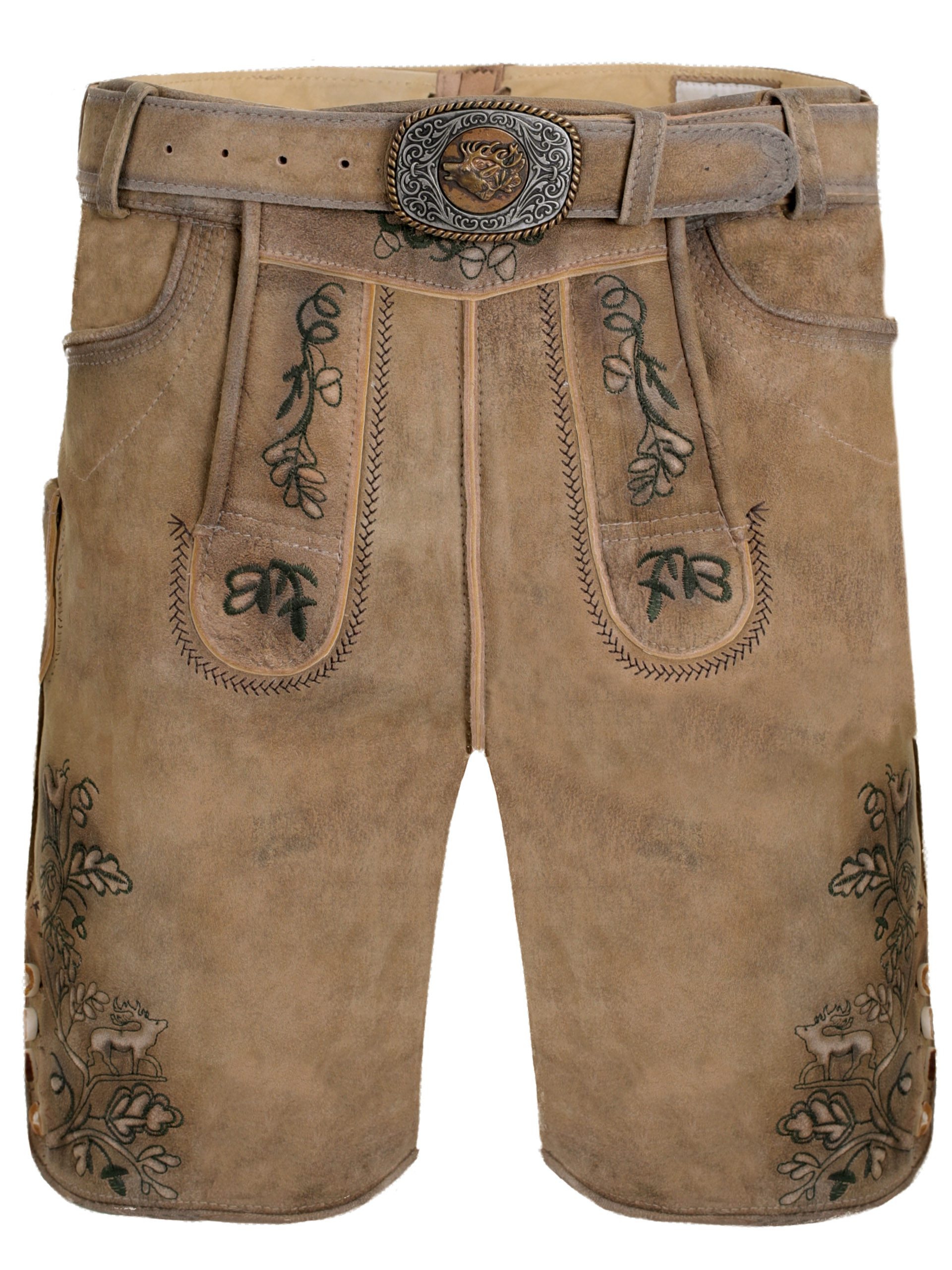 Erlebe die Authentizität der bayerischen Tradition mit unserer braunen Trachtenlederhose "Bregenz"! Hergestellt aus hochwertigem Wildbockleder und verziert mit Stickereien in tannengrünem Farbton, ist diese Hose nicht nur ein Kleidungsstück, sondern ein Ausdruck von Stil und Originalität. Jede Naht und jedes Detail dieser Hose spiegeln die erstklassige Handwerkskunst wider, die in Bayern hochgeschätzt wird. Gefertigt aus feinstem Wildbockleder, garantiert die "Bregenz" nicht nur einen außergewöhnlichen Tragekomfort, sondern auch eine lange Lebensdauer. Die tannengrünen Stickereien auf der braunen Lederhose verleihen ihr einen einzigartigen Charakter und machen sie zu einem Blickfang auf jedem Fest. Diese liebevollen Details erzählen die Geschichte der bayerischen Tradition und verleihen jedem Träger eine besondere Ausstrahlung. Der mitgelieferte Gürtel ermöglicht eine individuelle Anpassung, sodass die Hose immer perfekt sitzt und höchsten Tragekomfort bietet. Kein Verrutschen oder Einschneiden – genieße jede Minute in dieser Hose, egal wie lange das Fest dauert.