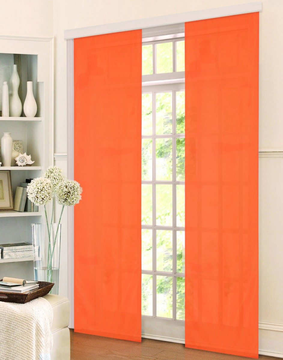Schiebepanel aus Microsatin mit Panelwagen. Hochwertiger Flächenvorhang aus Micro Satin mit matter Oberfläche. Komplett mit Panelwagen und Montagematerial, passend für alle gängigen Vorhangschienen. Verfügbar in vielen leuchtenden Farben.