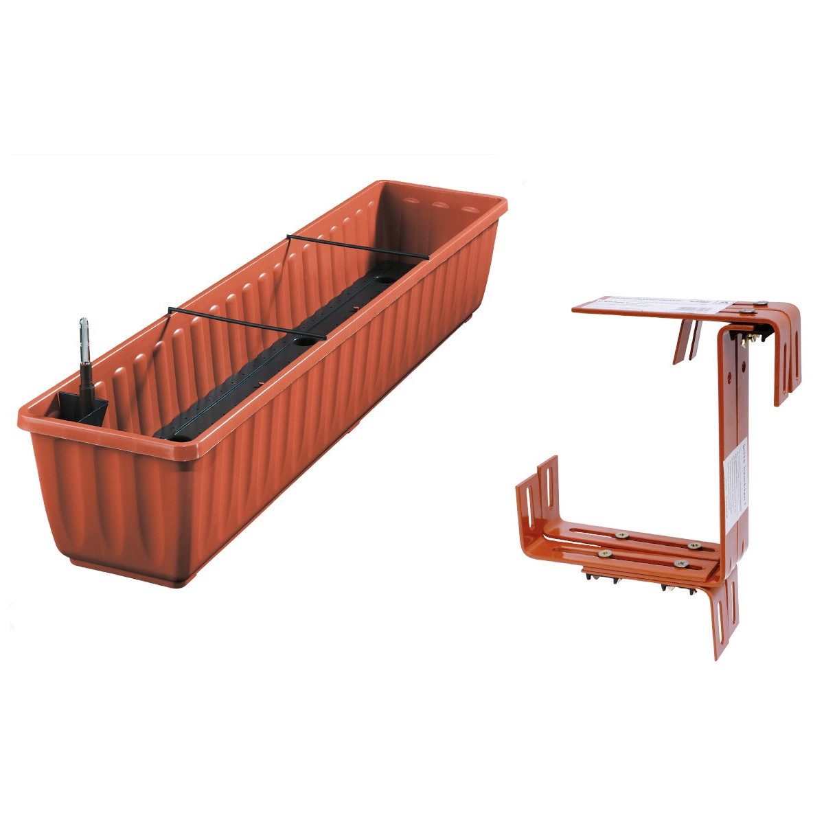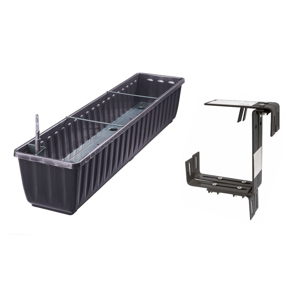 der bewährte Balkonkasten AQUA FLOR inklusive Bewässerungseinsatz und Wasserstandanzeiger kombinert mit dem passendem Balkonkastenhalter