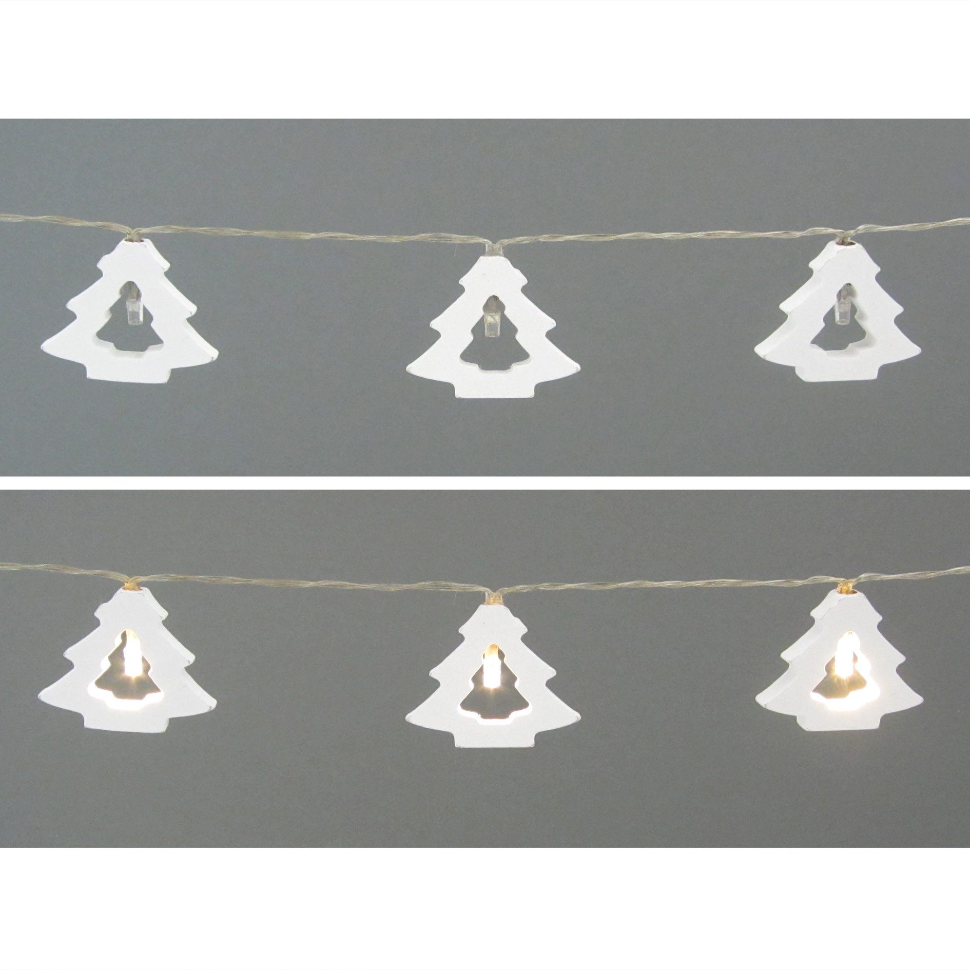 Schöne Holz Girlande / Lichterkette mit LED (x 10) für Ihre Weihnachtsdekoration in Weiß. Diese leuchtende Festtagsdekoration verwandelt Ihr Zuhause in ein angenehmes Wohlfühlambiente, schafft angenehme Wärme und zaubert im Handumdrehen ein gemütliches Flair. Zum Betrieb werden 2 Batterien (Typ AA) benötigt (nicht enthalten).
