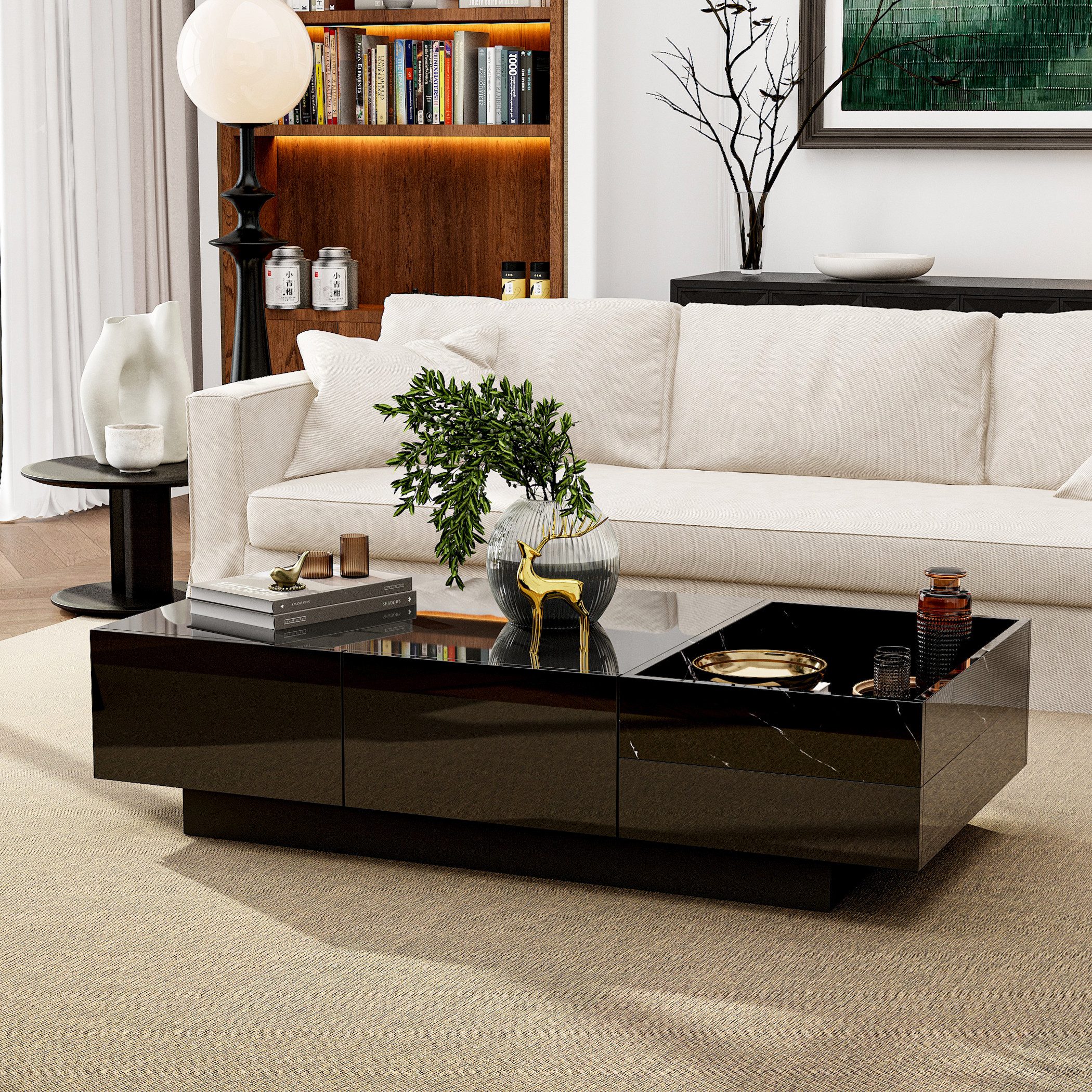Design: Moderner Couchtisch in Schwarz mit edlem Marmormuster, verleiht jedem Wohnzimmer stilvollen Look.
