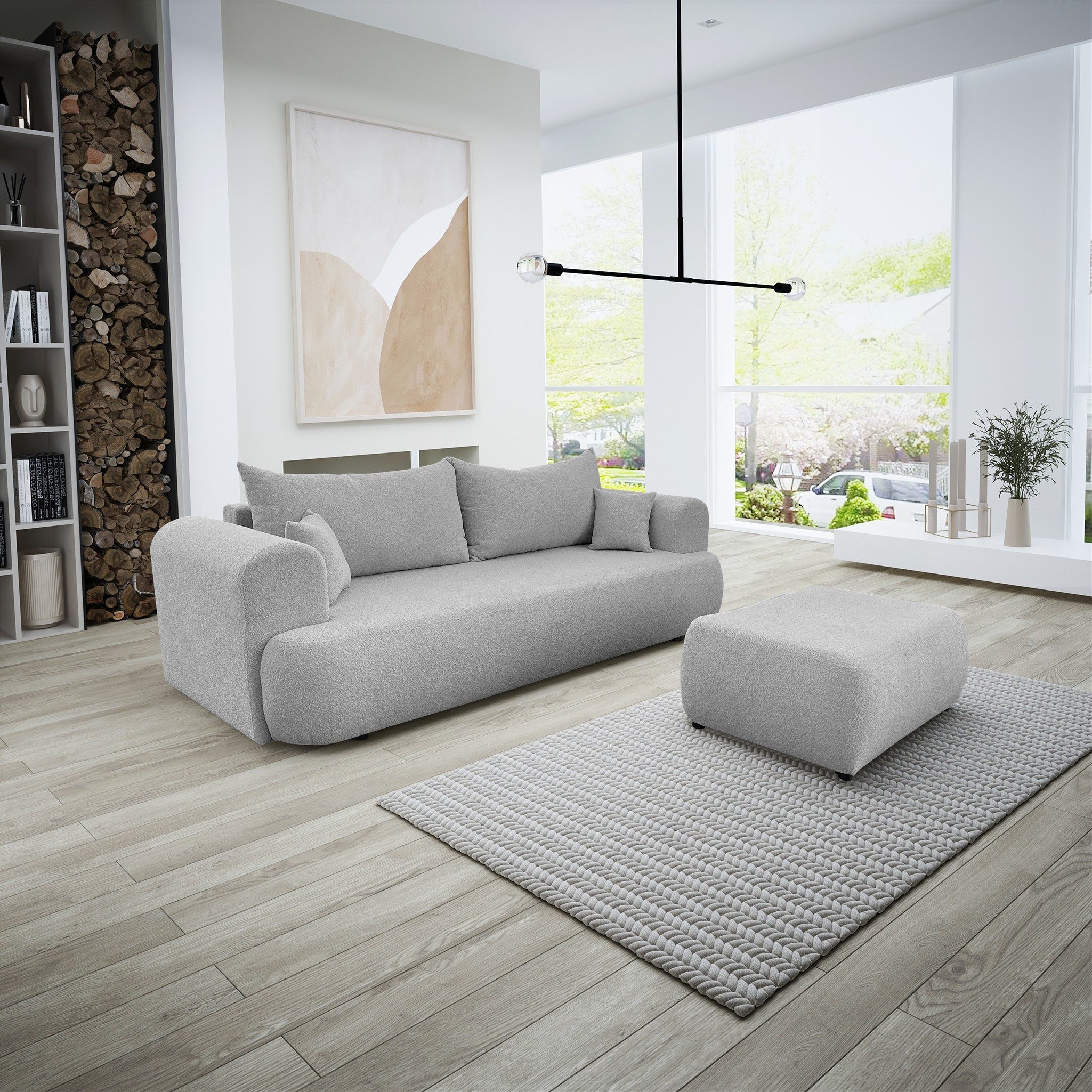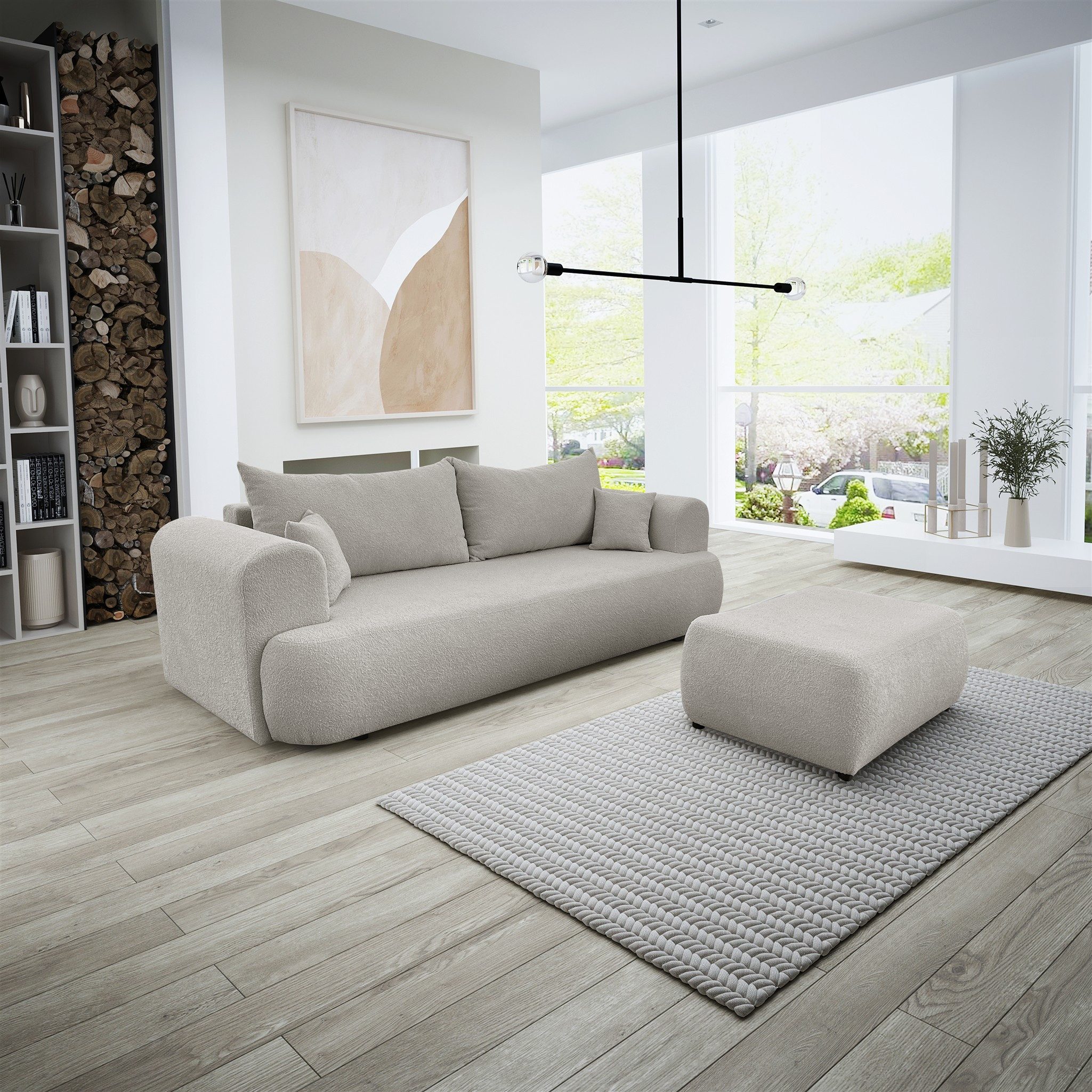 Modellbezeichnung | Schlafsofa ANIKE 3-Sitzer plus Hocker in Stoff Now or Never |