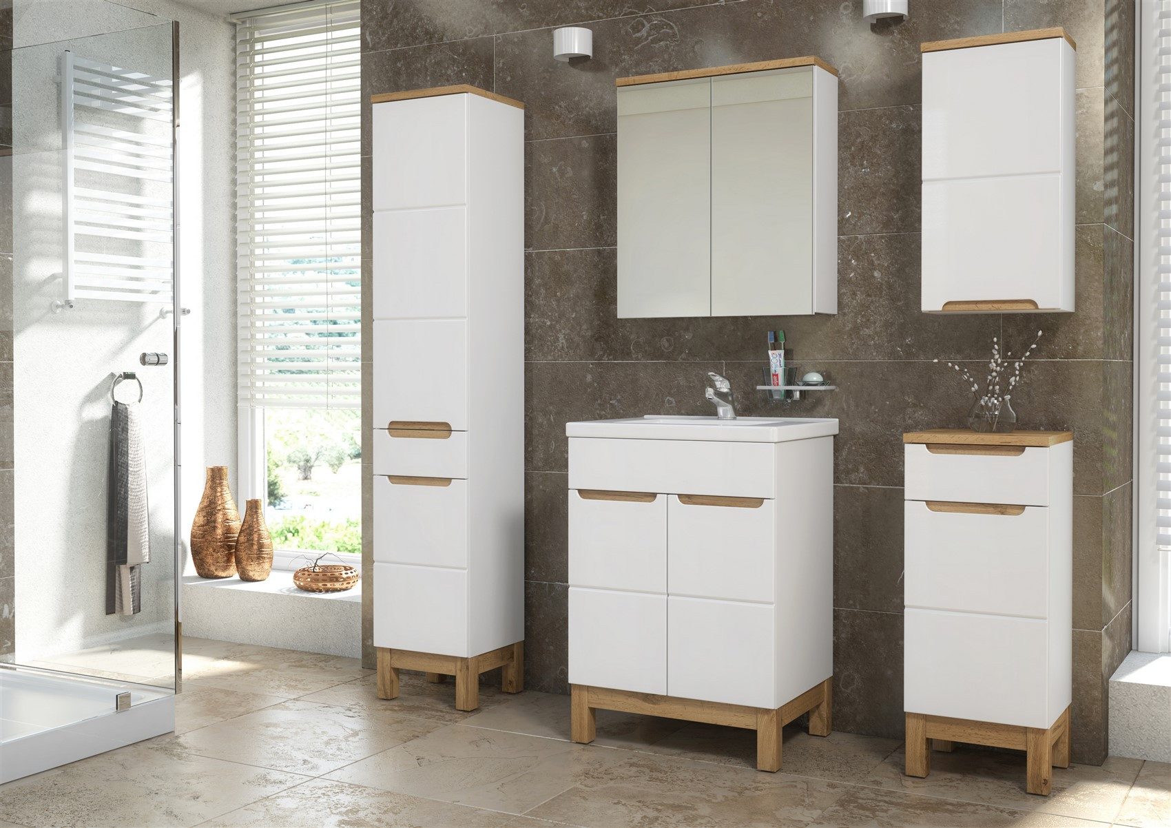 Ausführung | Badmöbel Set 5-tlg Badezimmerset DEVI Weiss HGL inkl.Waschtisch 60 cm |