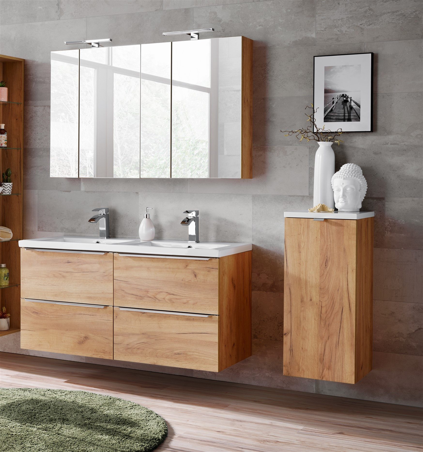Modellbezeichnung | Badmöbel Set 6-tlg Badezimmerset PERUGIA Gold Eich inkl.Waschbecken |