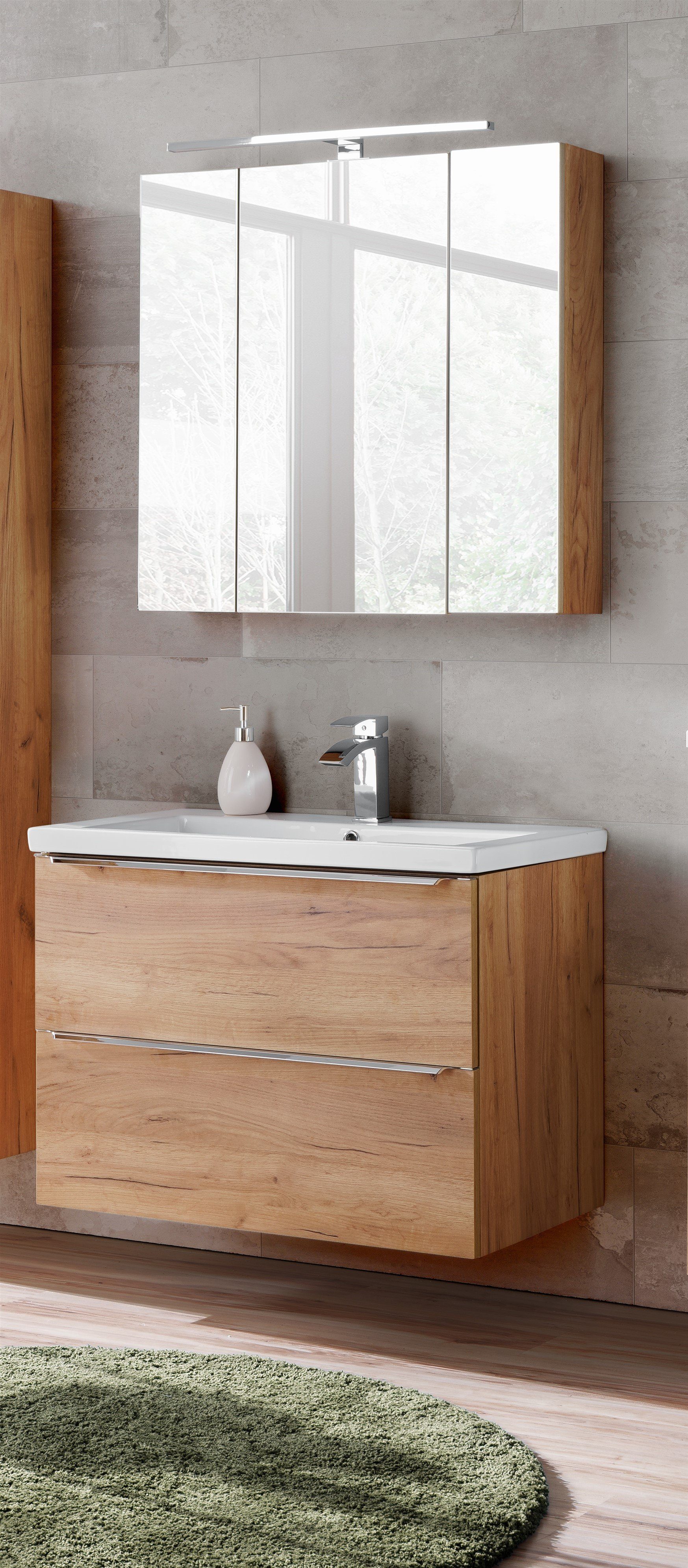 Modellbezeichnung | Badmöbel Set 3-tlg Badezimmerset PERUGIA Eiche |