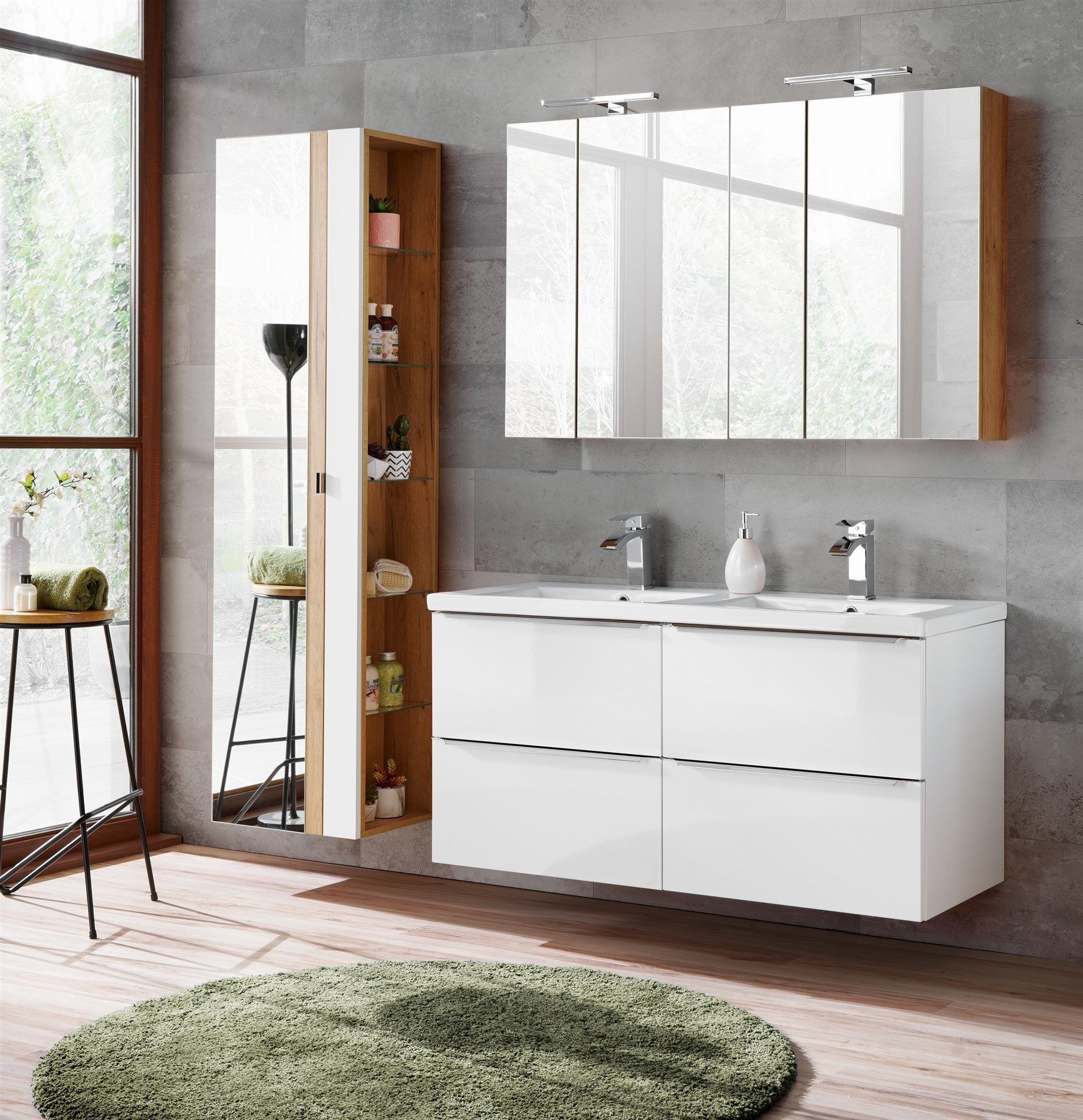 Lieferumfang | 2 x Waschbeckenunterschrank 1 x Hängeschrank 2 x Spiegelschrank inkl. LED |