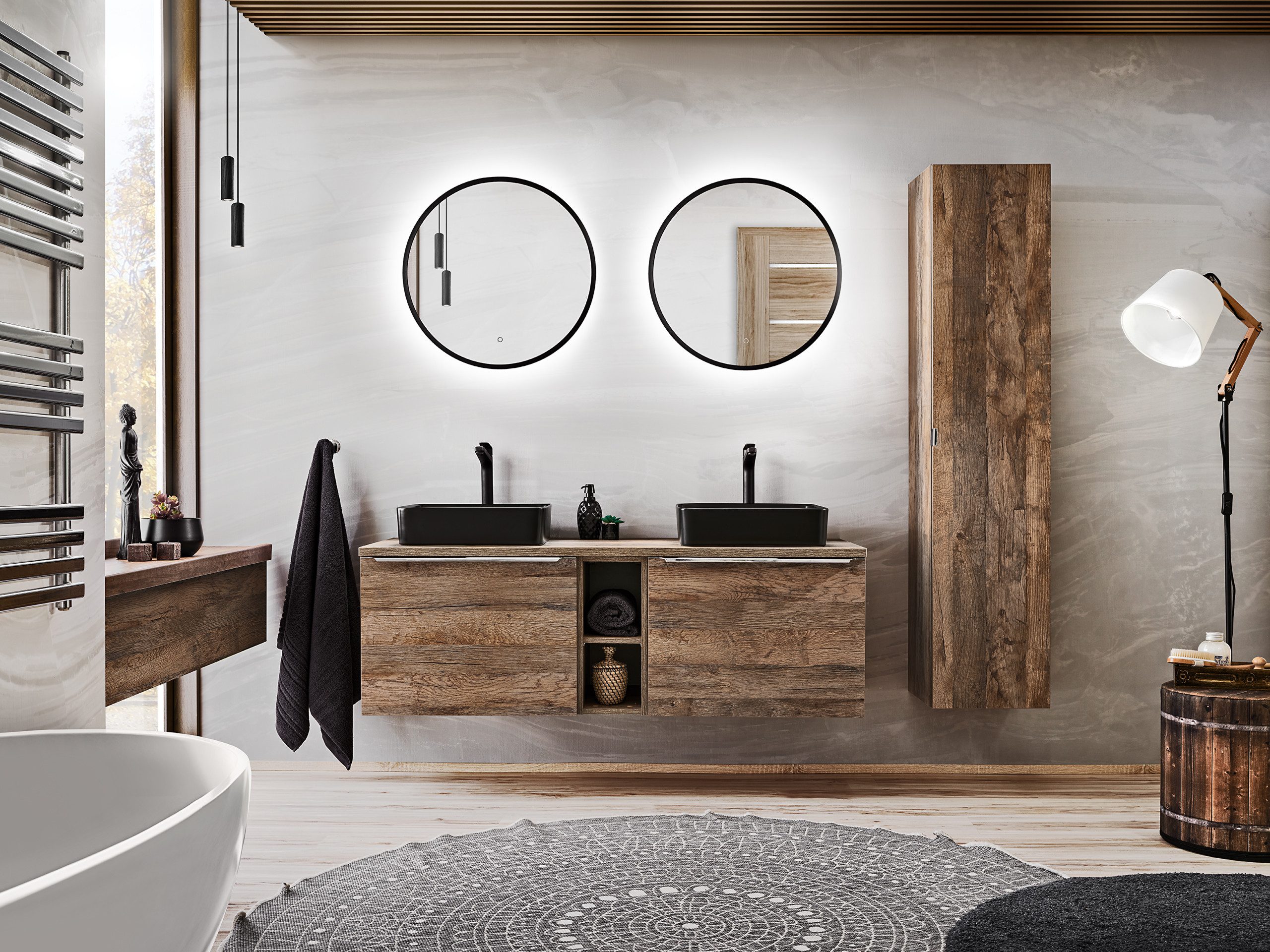 Modellbezeichnung | Badmöbel-Set Serie AKAN 140cm Vintage Eiche 6/8teilig |