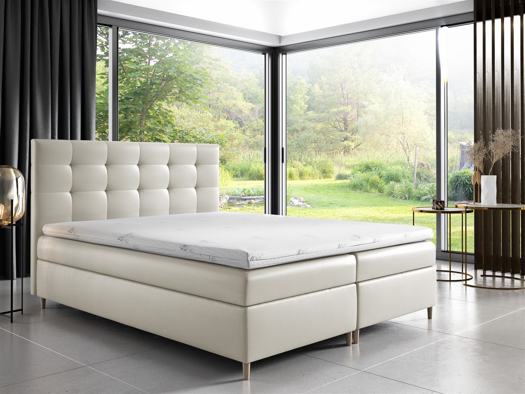 Modellbezeichnung | Boxspringbett Schlafzimmerbett ARVID Kunstleder Creme inkl. Topper |