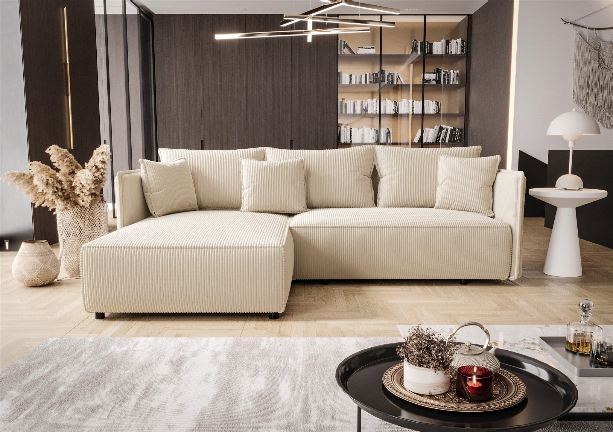Lieferumfang | Ecksofa Schlafsofa Sofa EVORA in Stoff Poso mit Ottomane Links oder Rechts |