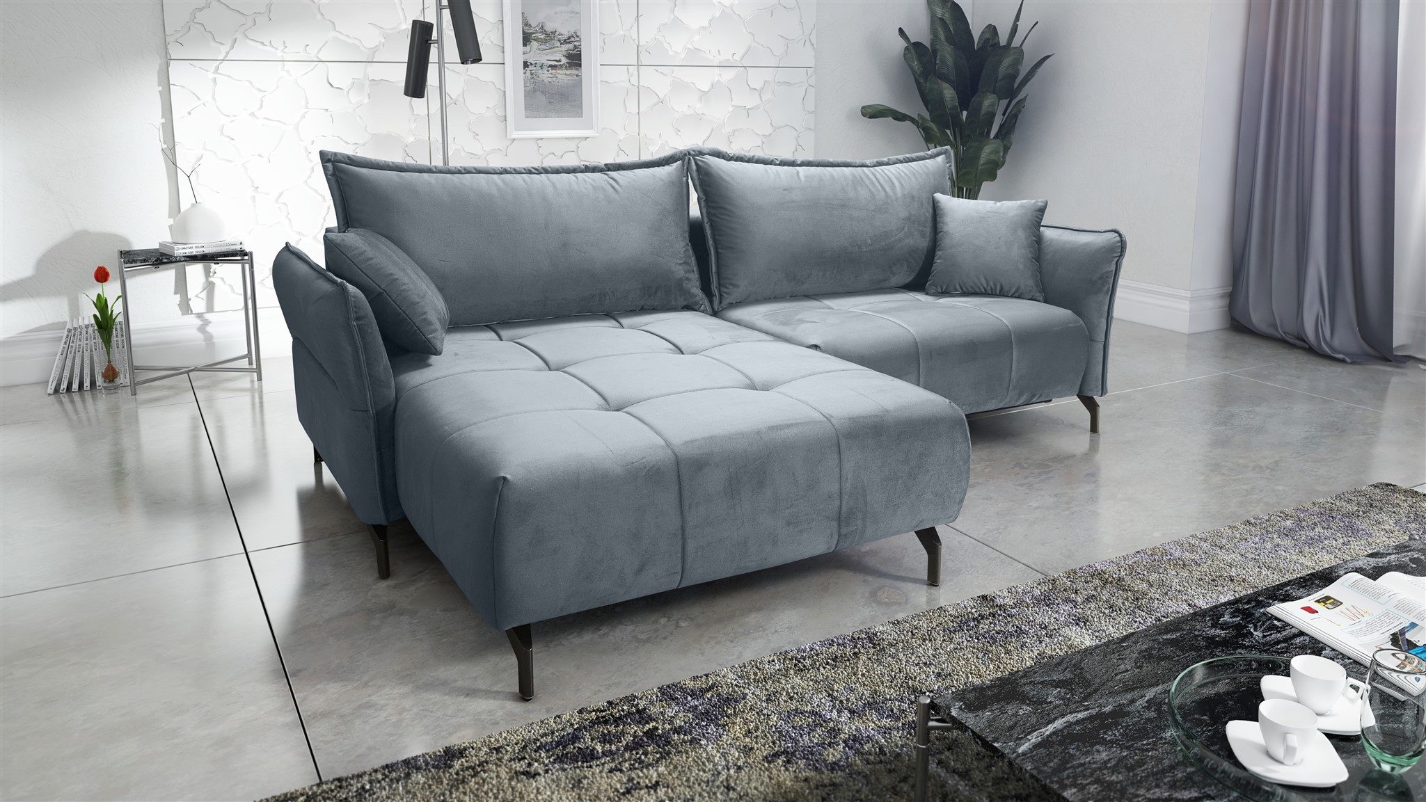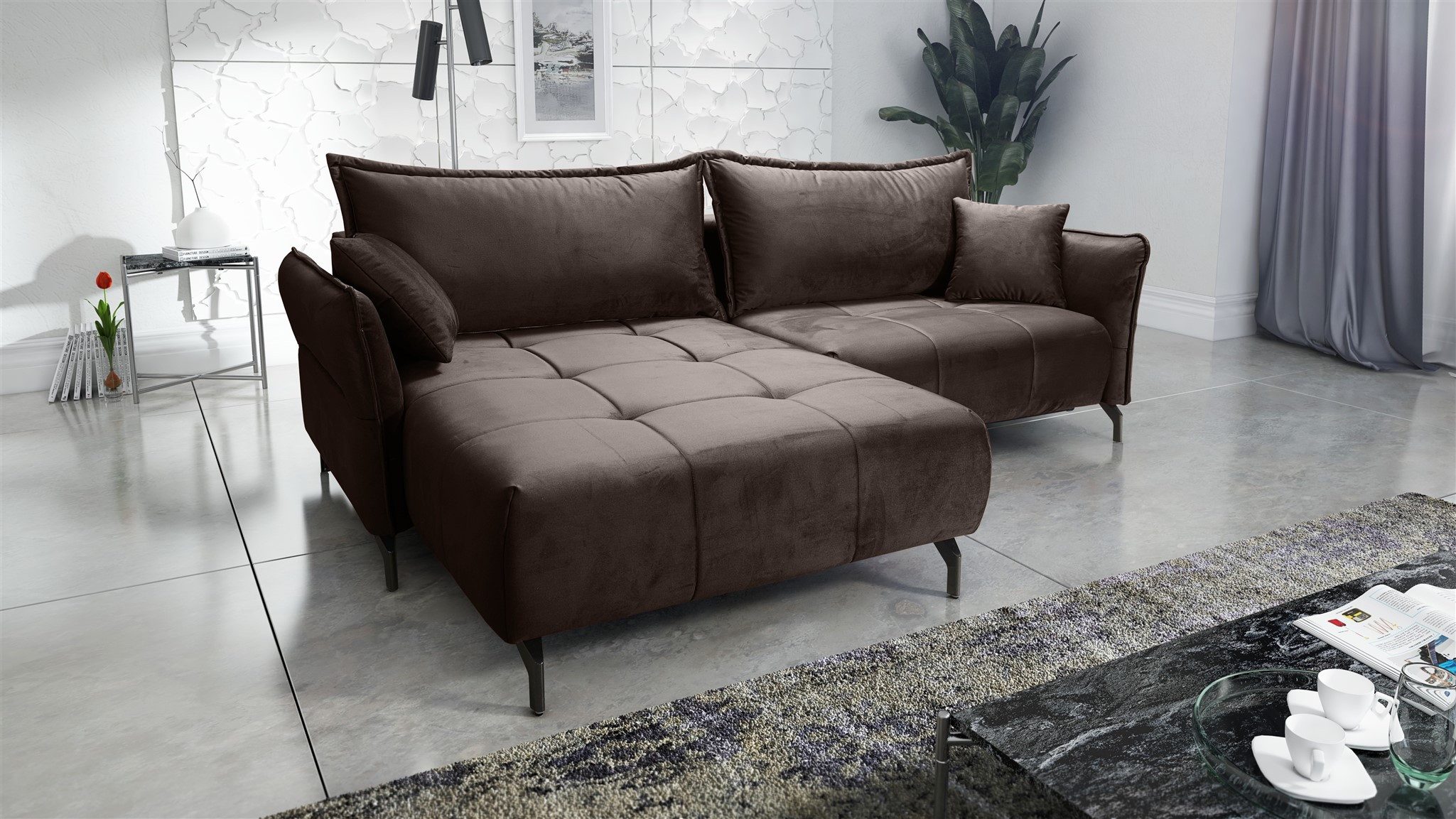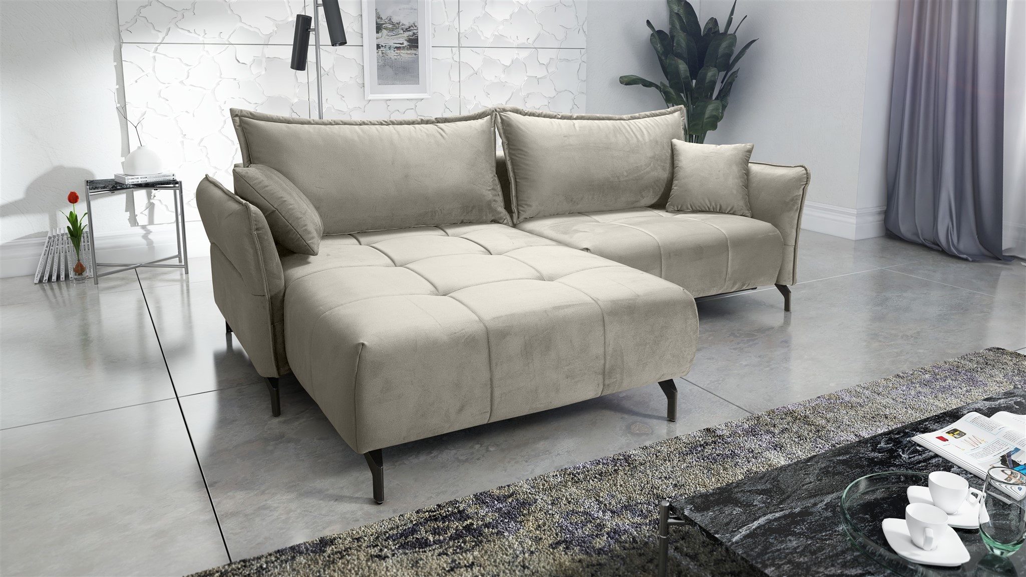 Set-Info | Ecksofa mit Schlaffunktion, Bettkasten, 2 Rücken- und 2 Zierkissen |