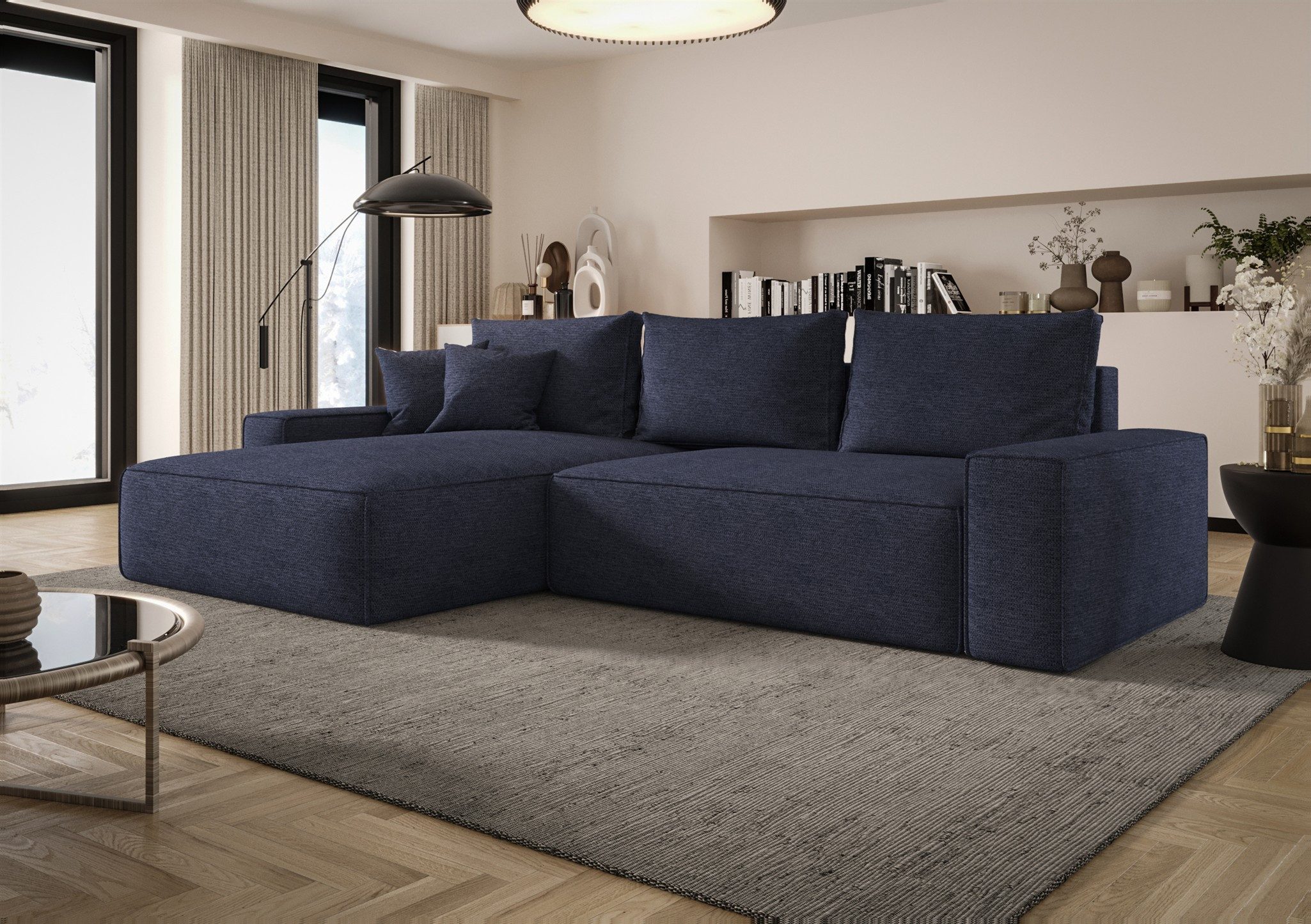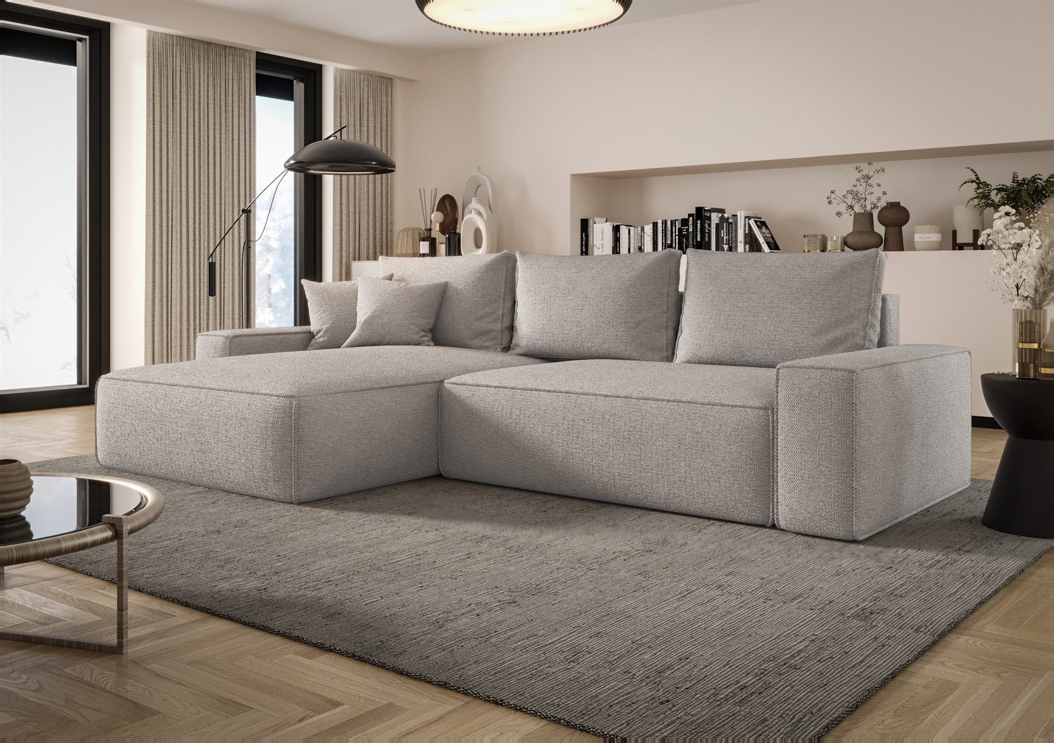 Fun Möbel Ecksofa Schlafsofa WALKEN mit Ottomane in Stoff Aragon, mit Bettkasten, Rundumbezug