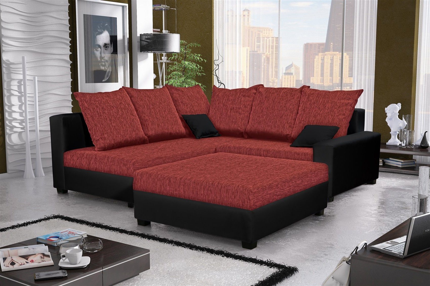 Set-Info | Ecksofa mit Hocker, 6 Rückenkissen und 2 Zierkissen |