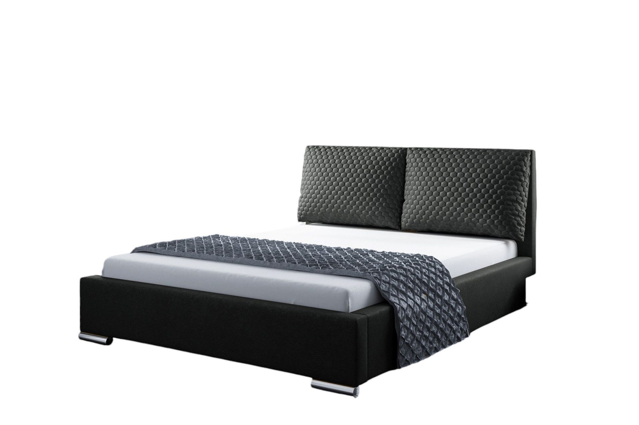 Ausführung | Polsterbett Doppelbett GALENO in Stoff Riviera Schwarz 140x200cm ohne Matratze |
