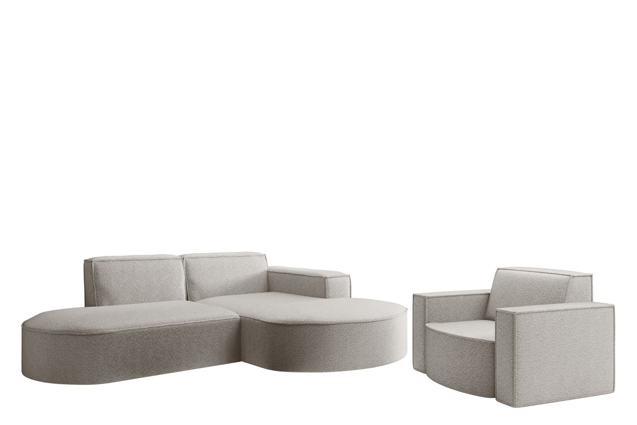 Lieferumfang | Sofaset Designerecksofa PALMA XS Ottomane Links oder Rechts plus Sessel in Stoff Ascot |