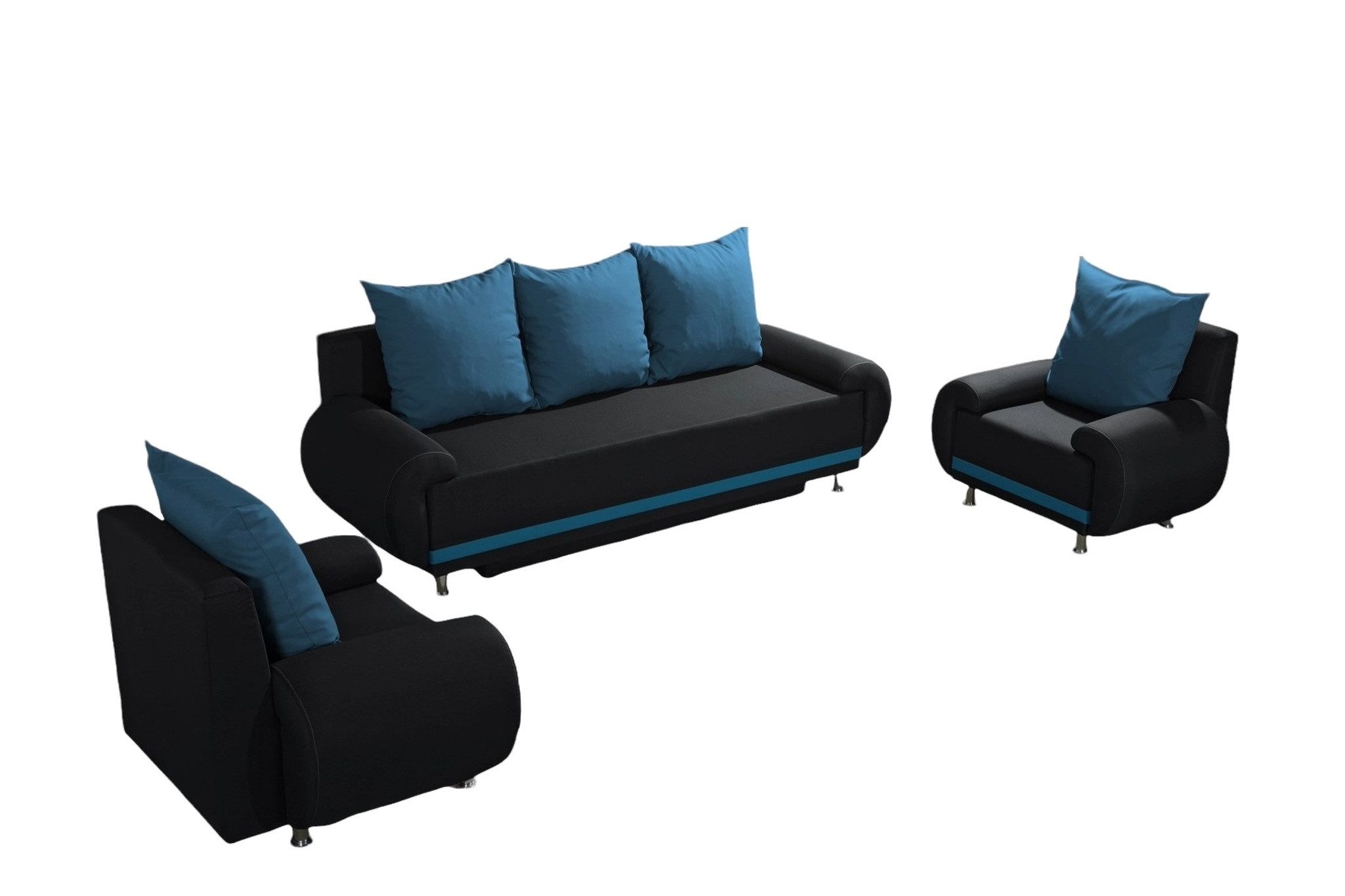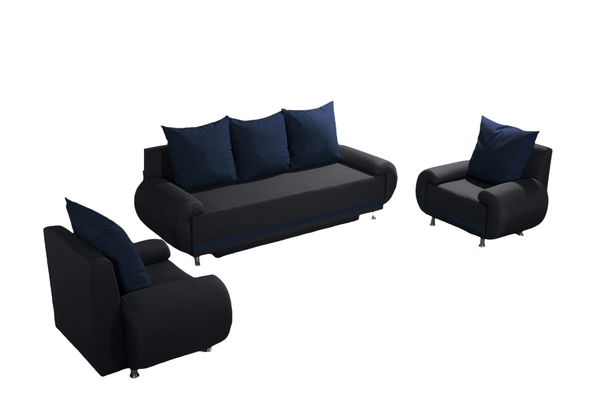 Ausführung | Designersofa MIKA Sofaset 3-Sitzer plus 2 Sessel Polyesterstoff Anthrazit-Hellblau |