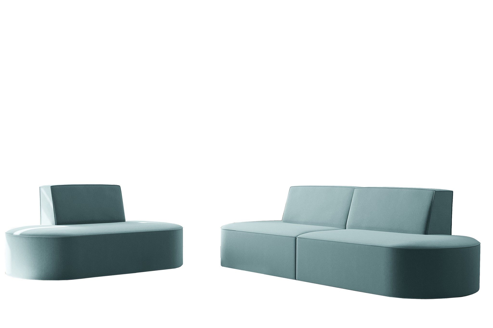 Ausführung | Designersofa MILOT Sofaset 2-Sitzer plus Sessel Stoff Opera Velvet Aquablau |