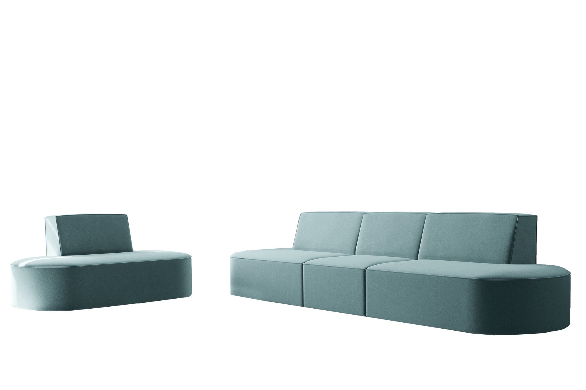 Ausführung | Designersofa MILOT Sofaset 3-Sitzer plus Sessel Stoff Opera Velvet Aquablau |
