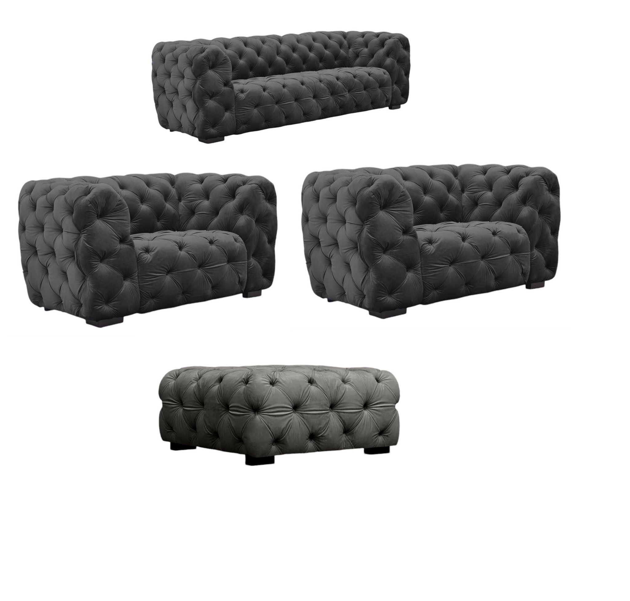 Lieferumfang | Sofaset Designersofa NATALIE 2-1-1 in Stoff inkl. Polsterhocker |