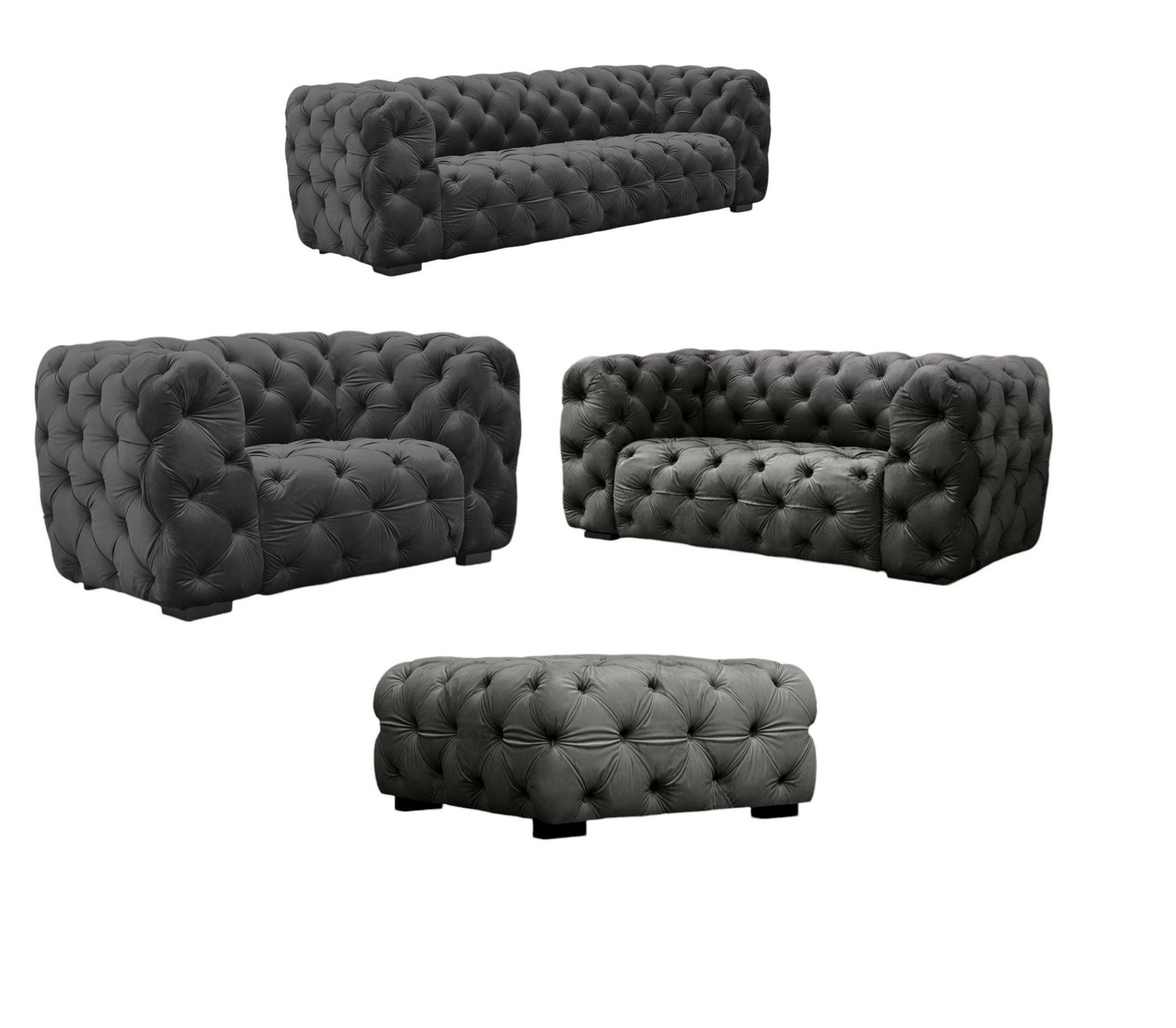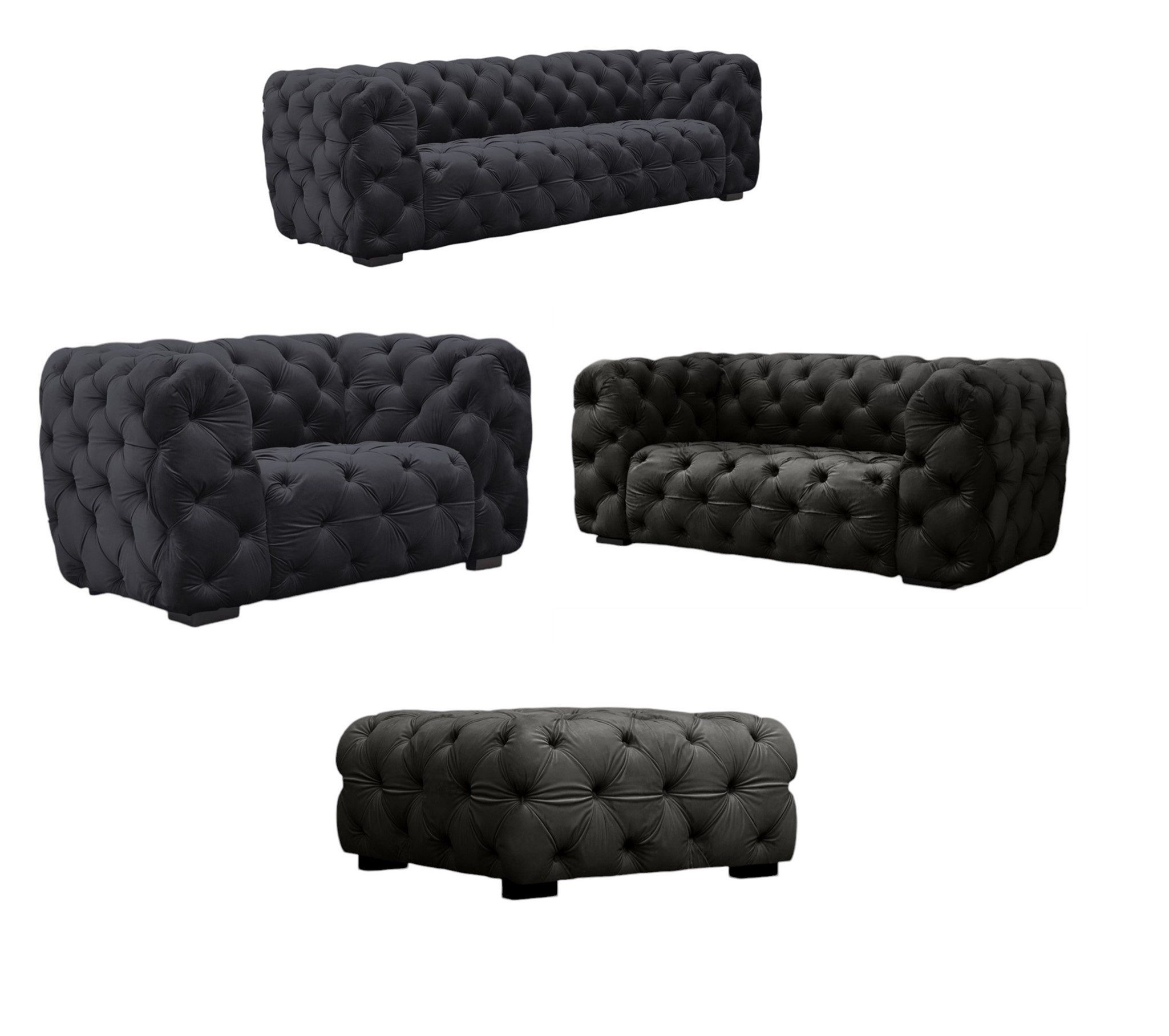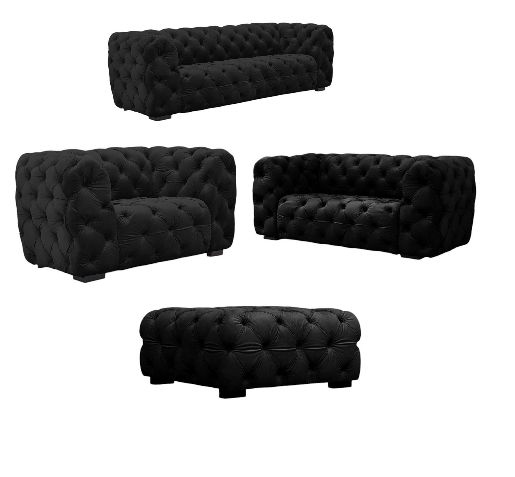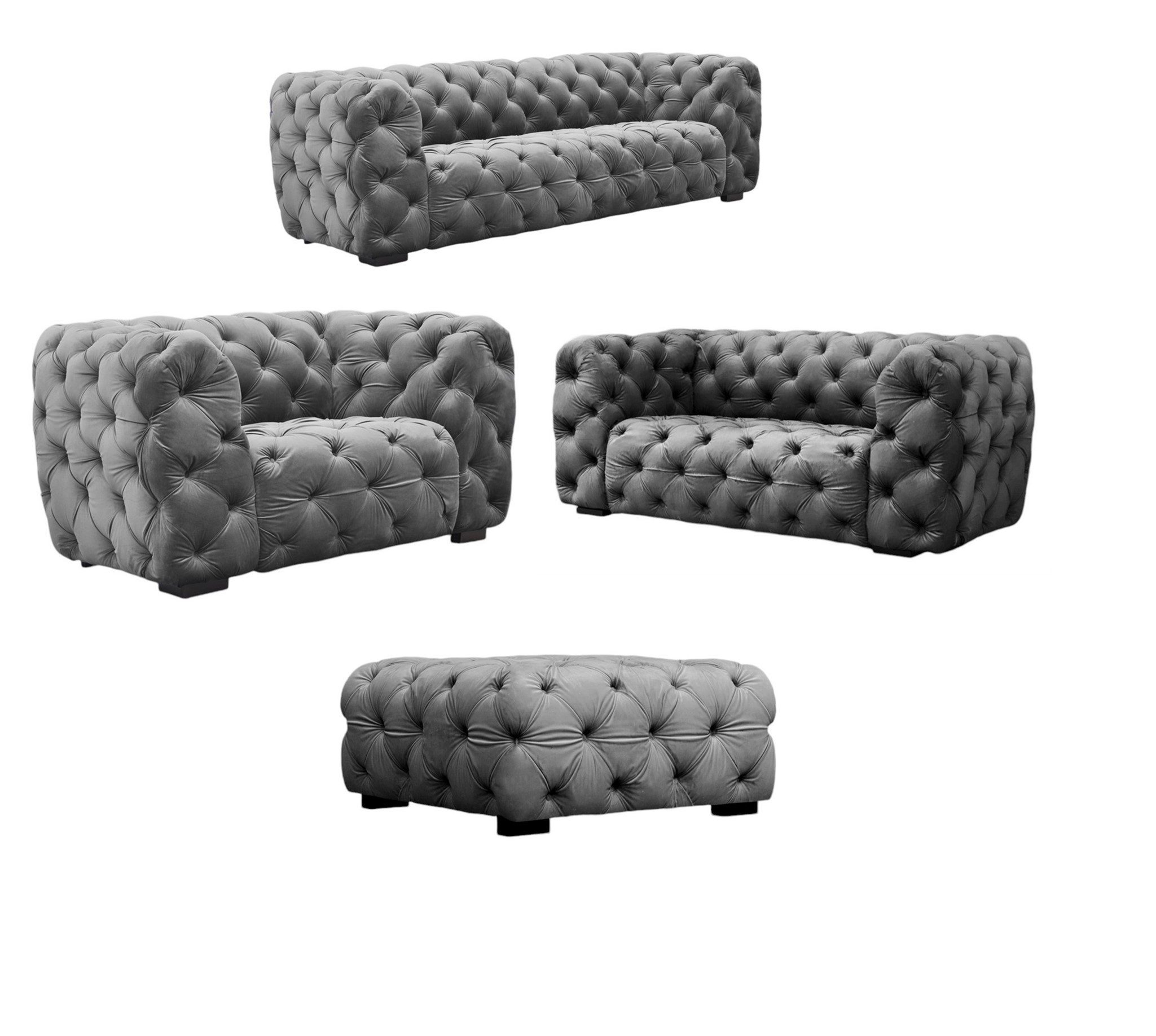 Lieferumfang | Sofaset Designersofa NATALIE 3-2-1 in Stoff inkl. Polsterhocker |