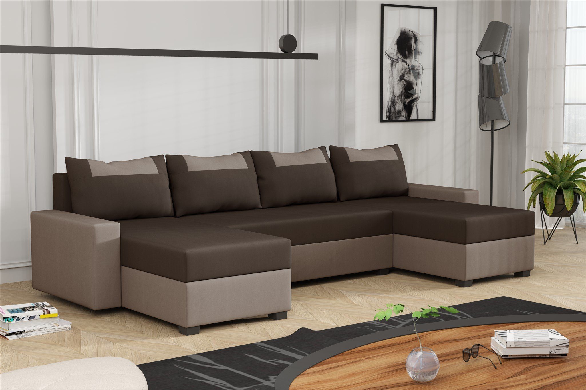 Set-Info | Wohnlandschaft mit einem Bettkasten und 4 Rückenkissen |