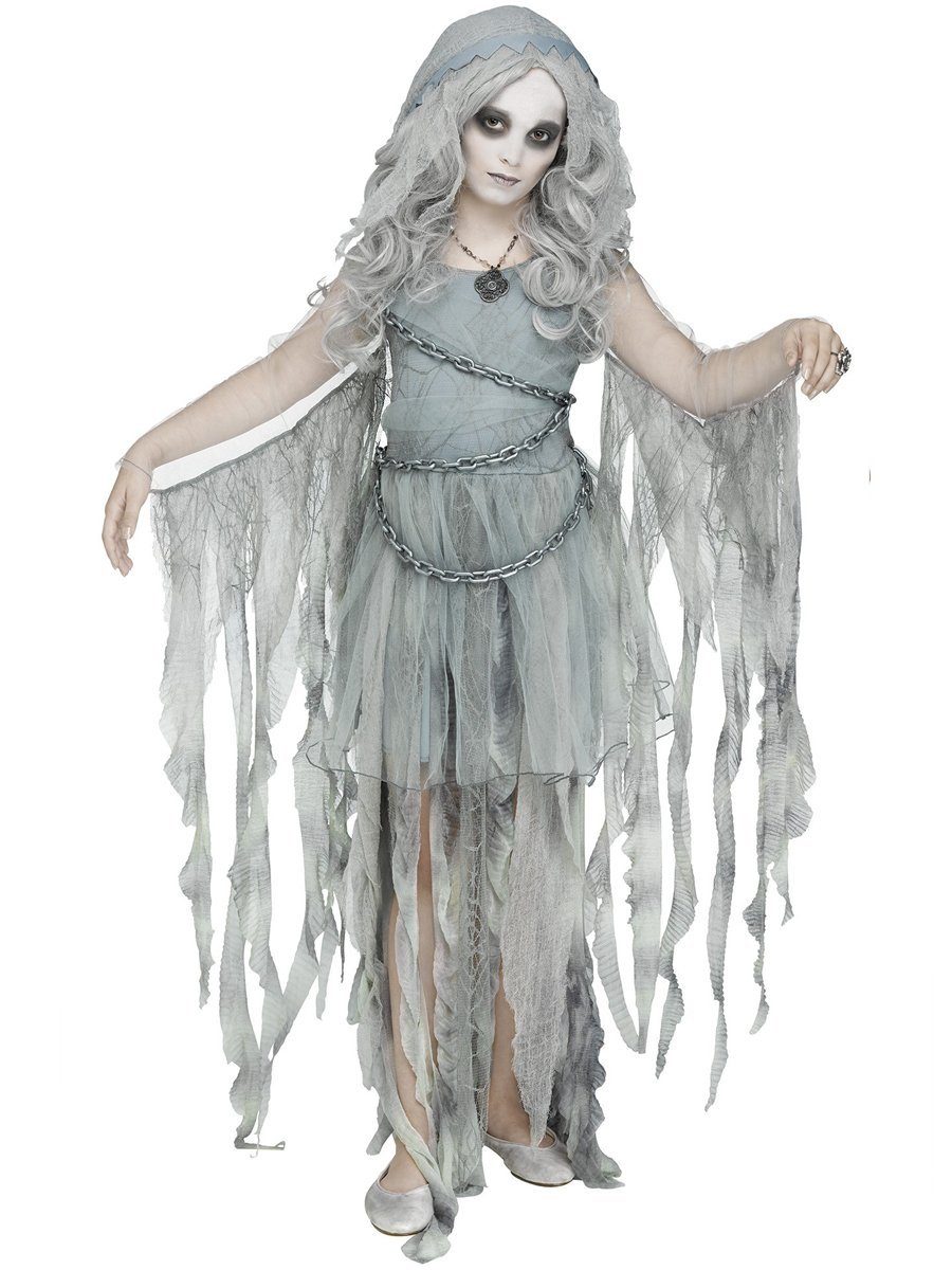 Ausstattung | - Geisterprinzessin Kinderkostüm zweiteilig- mit Kapuzenkleid- mit Kette- ohne Perücke |