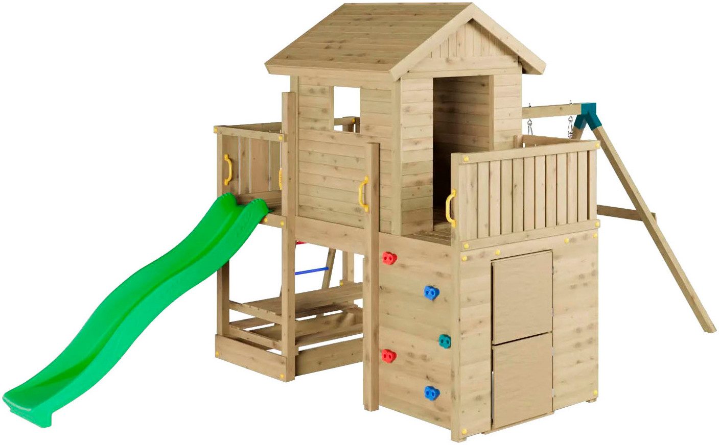 Ausstattung | Fungoo Multifort KDI - Spielspaß & Abenteuer für den Garten! Der Fungoo Multifort KDI ist ein hochwertiger Holzspielplatz mit vielseitigen Spielmöglichkeiten. Dank seiner robusten Konstruktion und zahlreichen Features bietet er Kindern kreativen und sicheren Spielspaß im eigenen Garten. Produkteigenschaften: