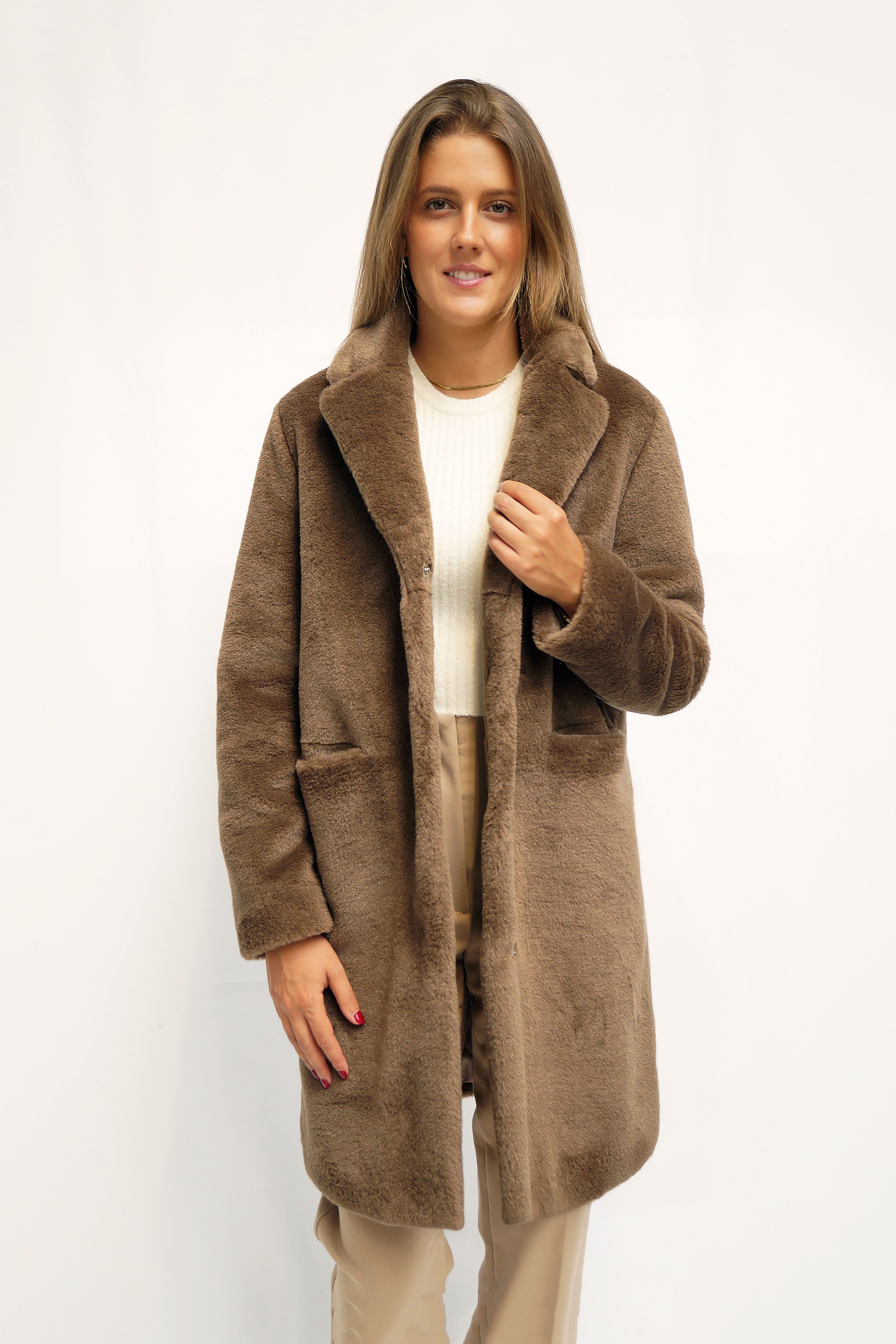Dieser kuschelige Plüschmantel ist ein stilvoller Allrounder für die Übergangszeit und kalte Wintertage. Das glänzende Innenfutter sorgt nicht nur für ein angenehmes Tragegefühl, sondern unterstützt auch die formstabile Passform und betont dabei eine schmeichelhafte Silhouette. Ob solo getragen oder kombiniert mit eleganten Accessoires – dieser Mantel ist ein echter Hingucker. In Kombination mit einem hochwertigen Schal und einer stylischen Handtasche verleihen Sie Ihrem Look im Handumdrehen eine edle Note. Die modisch platzierten Eingriffstaschen bieten ausreichend Platz für Ihre Essentials und runden das Design funktional ab. Mit einer Rückenlänge von ca. 93 cm (Размер 38) avanciert dieser Mantel schnell zum vielseitigen Lieblingsteil für modebewusste Frauen an kalten Tagen.