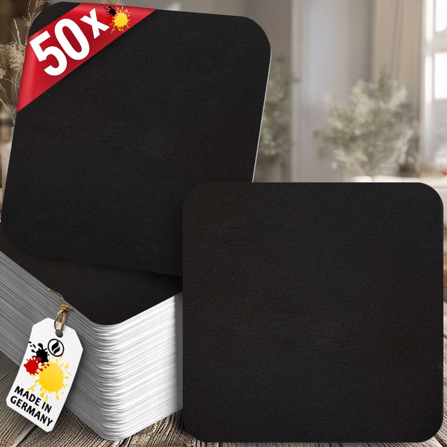Minimalistische schwarze Bierdeckel, eckig 93x93 mm: Zeitloses Design für stilvolle Tischdekoration und modernes Bar-Setting, vielseitig einsetzbar.