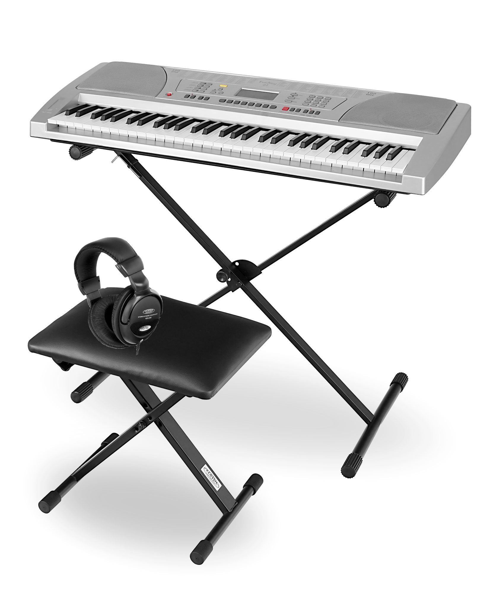 Lieferumfang | 1 x Funkey 61 Keyboard 1 x Netzteil 1 x Notenhalter 1 x Keyboardständer 1 x Keyboardbank 1 x Kopfhörer |