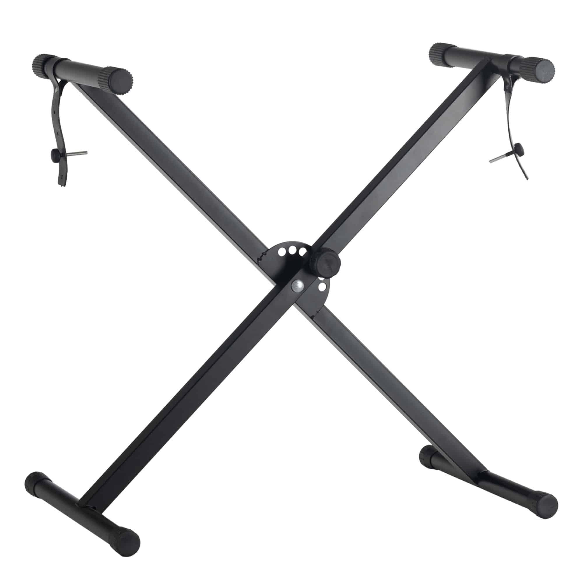 Der ideale Ständer für Zuhause oder die kleine Bühne! Er bietet rutschfesten Halt, egal ob für Keyboards, leichte Stagepianos oder Synthesizer bis max. 10 kg. Dieser X-Keyboardständer ist über den Schnellverschluss bequem und einfach auf 7 verschiedene Höhen einstellbar. So erreicht jeder eine für ihn ergonomische und angenehme Spielhaltung. Dank der kürzeren Verbindungsrohre kann dieses Keyboardstativ auch komfortabel für weniger breite Tasteninstrumente verwendet werden. Damit eignet er sich perfekt als nützliches Zubehör für Dein Einsteigerkeyboard oder kompakten Synthesizer.