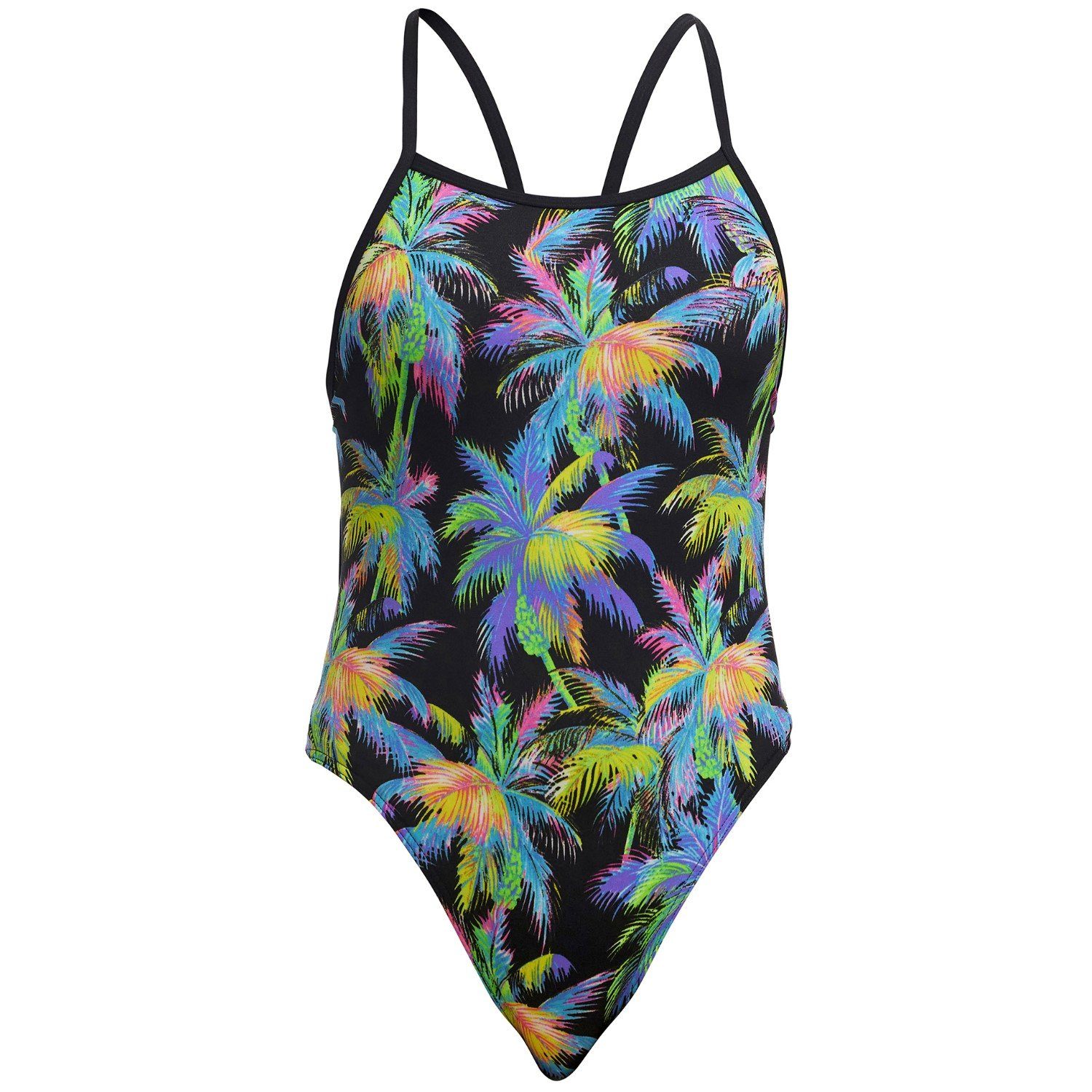 Schöner Badeanzug mit offenem Rücken und V-förmigem Trägersystem, welches für einen sicheren Halt sorgt. Im unteren Rückenbereich ist das Funkita Logo ,eingestickt.