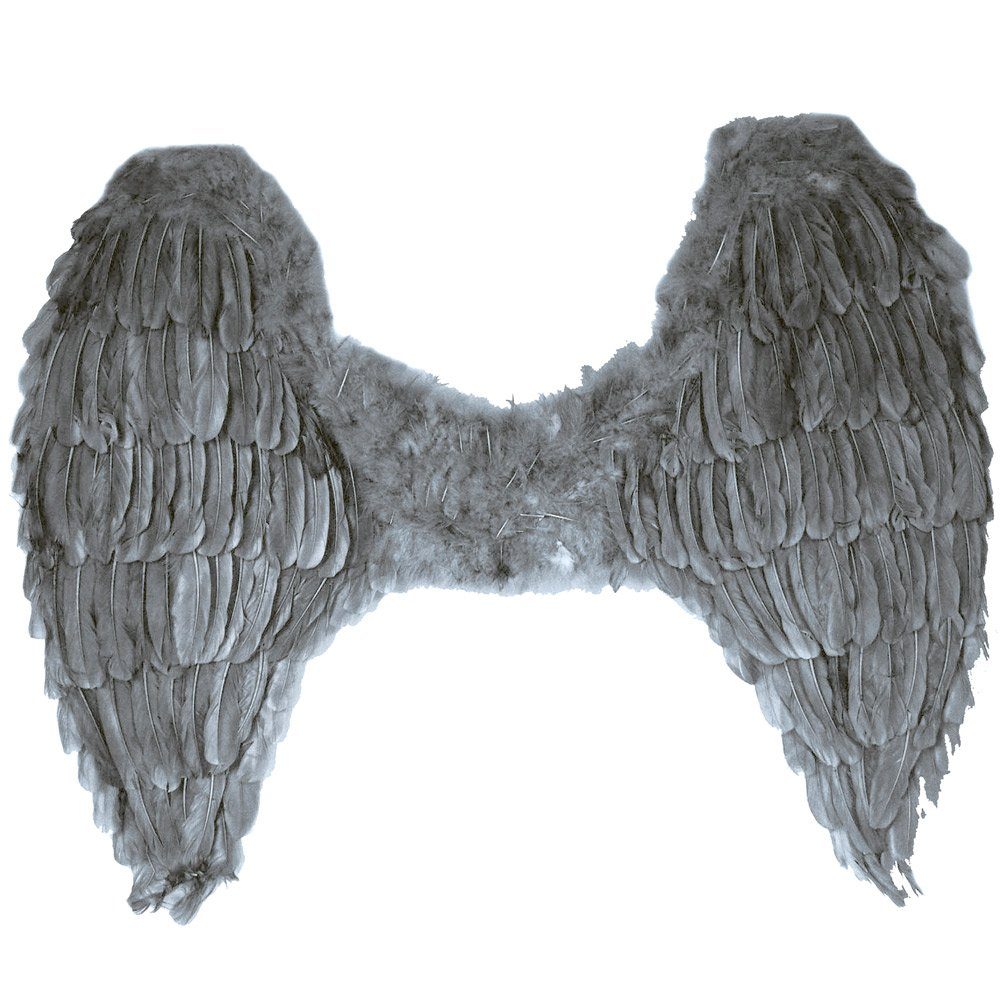 Imposantes Accessoire: Großartige Engelsflügel mit echten grauen Federn, die jedem Kostüm eine geheimnisvolle und elegante Ausstrahlung verleihen