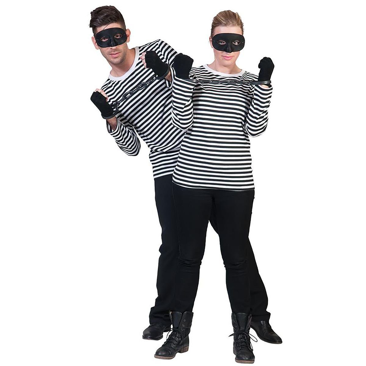 Schwarz-weiß gestreiftes Langarm-Shirt für Damen und Herren mit Rundhals-Ausschnitt. Tolles Kostüm-Basic in Ringel-Optik! Perfekt für zahlreiche Verkleidungen wie Pantomime, Gondoliere oder als Verbrecher geeignet! Das Unisex-Oberteil ist in fünf verschiedenen Größen erhältlich.