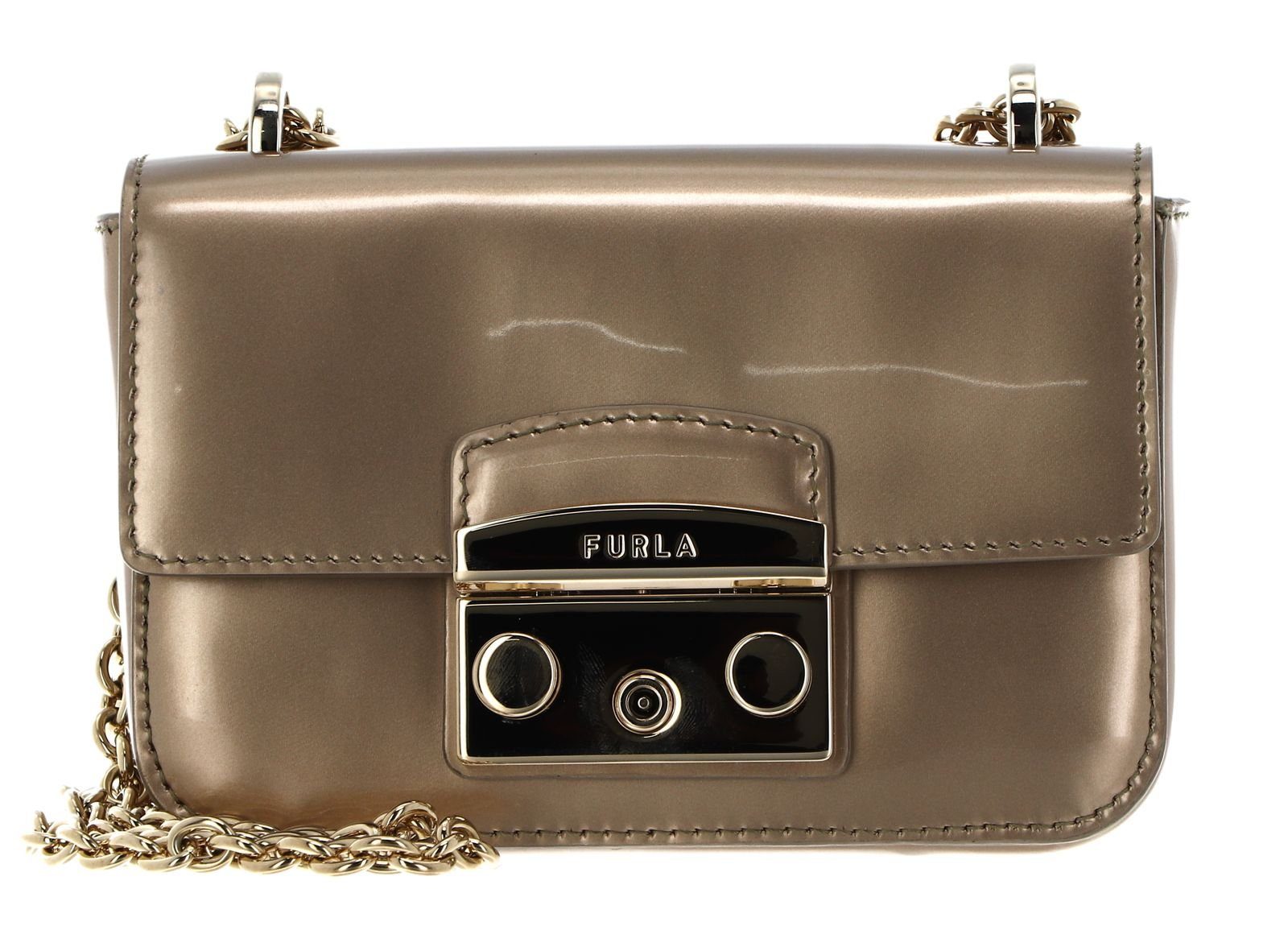 Mit dieser edlen FURLA Tasche können Sie Ihre wichtigsten Habseligkeiten bequem und super modisch mitnehmen. Durch den leichten Glanz und Glitzer an der Tasche, was man nicht oft an Taschen sieht, ist die FURLA Metropolis Mini Crossbody ein richtiger Hingucker. Das edle Design mit der goldfarbenen Kette verleiht Ihrem Outfit das gewisse Etwas und bringt alle zum Staunen. Aus hochwertigem Leder wurde diese FURLA Metropolis Mini Crossbody Schultertasche gefertigt und daher ein langlebiger und treuer Alltagsbegleiter.
