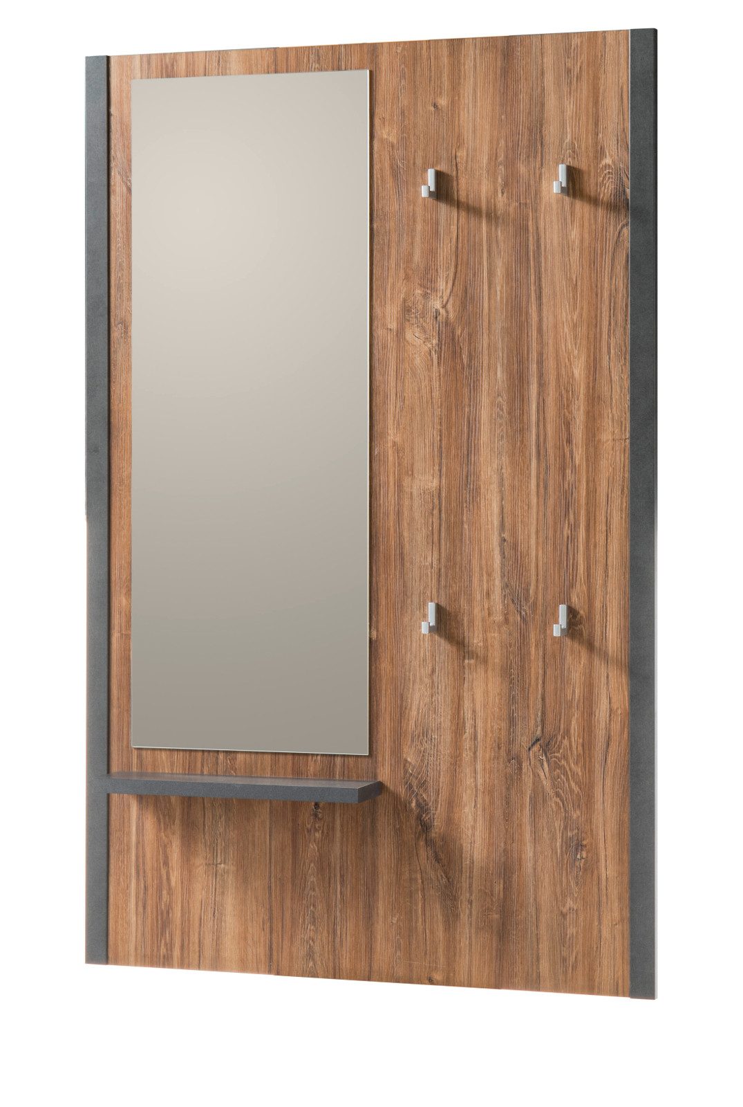 Furn.Design Garderobenpaneel Auburn (Wandgarderobe in Eiche Stirling und grau Matera, 90 x 138 cm), mit Spiegel