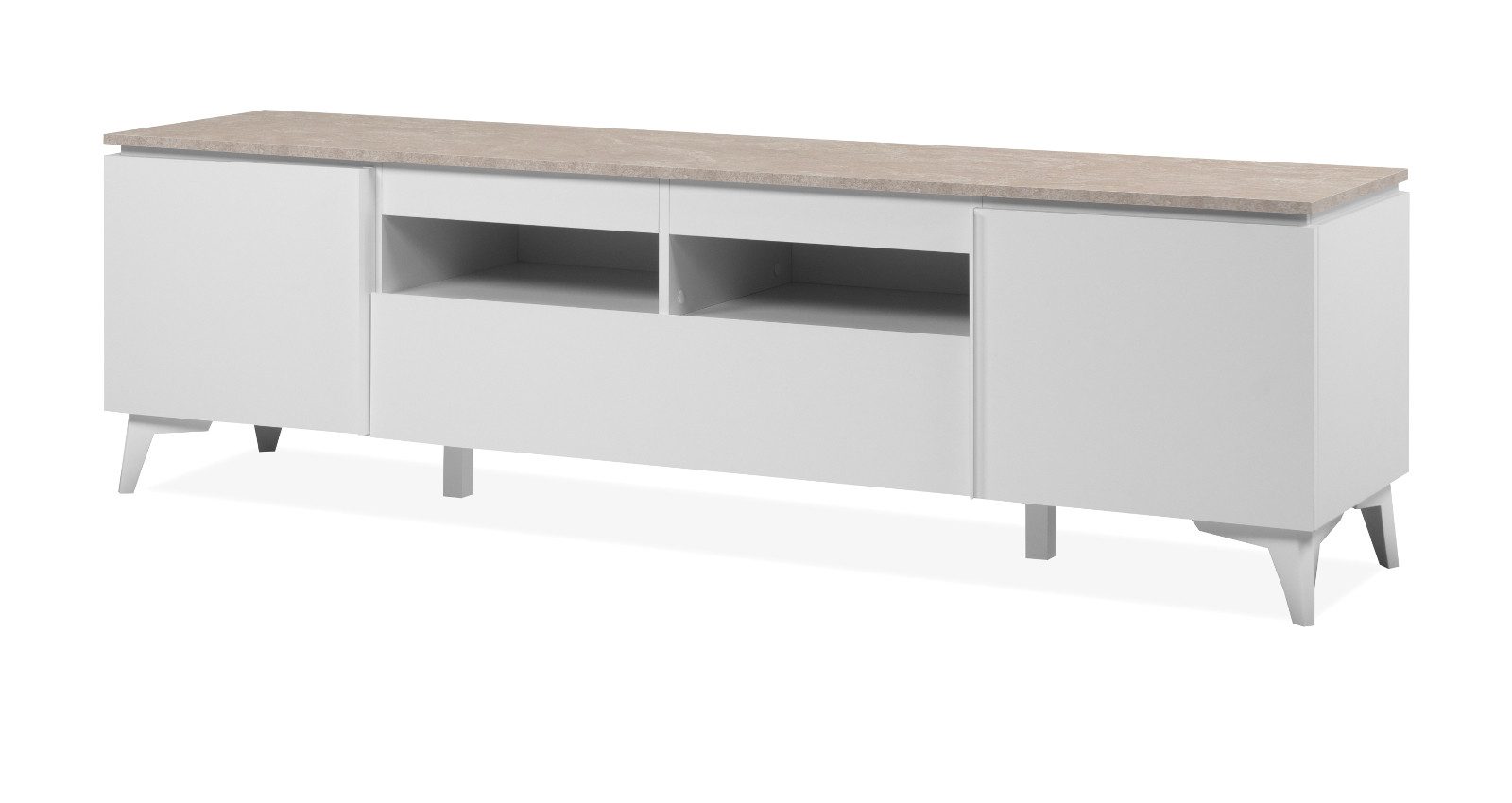 TV-Lowboard "Visby", weiß und Sandstein Dekor, 177 x 52 cm