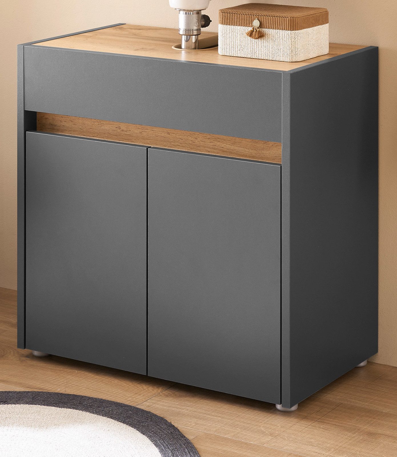 Waschbeckenunterschrank "Center", grau matt und Wotan Eiche Dekor, 60 x 62 cm
