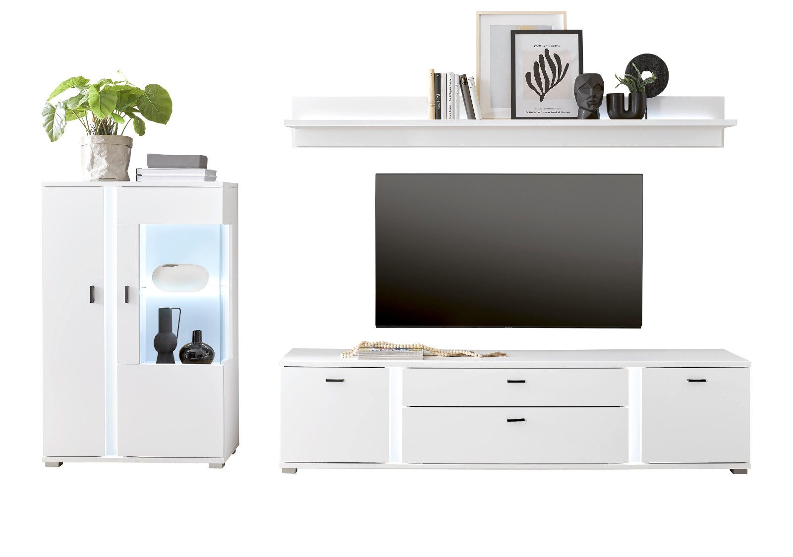 Wohnwand "Bellport", weiß matt, 3-teilig, inkl. LED, 290 x 170 cm
