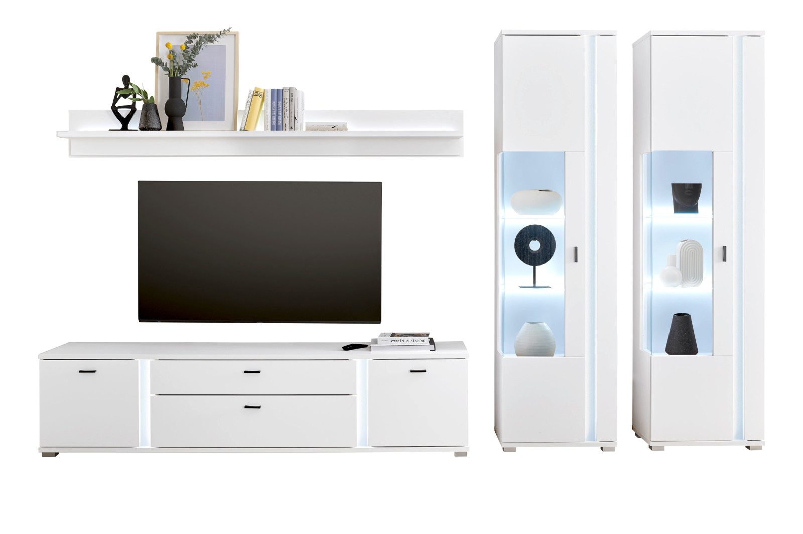 Wohnwand "Bellport", weiß matt, 4-teilig, inkl. LED, 330 x 200 cm
