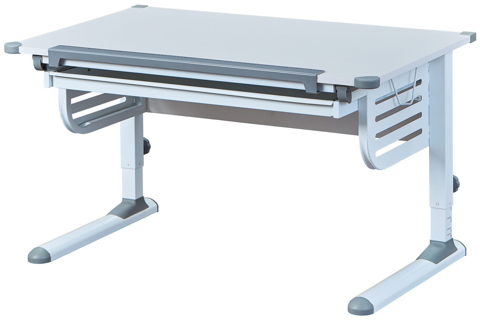Um sich richtig entwickeln zu können müssen Kinder in Bewegung bleiben. Dadurch, dass der Kindertisch Benjamin an die Размер des Kindes angepasst werden kann, ermöglicht der Kindertisch ein entspanntes Lernen in der richtigen Körperhaltung. Der Kindertisch Benjamin kann je nach Tätigkeit eingesetzt werden. So kann z.B. Beim Malen oder Zeichnen die Tischplatte in der Neigung verstellt werden um die Konzentration des Kindes zu fördern. Die Schublade bietet Platz um Dinge einfach verstauen zu können, die zum Lernen benötigt werden. Der Kindertisch Benjamin überzeugt neben Funktionen durch seine Oberfläche. Die unempfindliche Tischplatte besteht aus MDF. MDF steht für mitteldichte Faserplatte. Es handelt sich um Holzfasern, die zu einer fein strukturierten Platte verleimt wurden. Die glatte Oberfläche ist kratzfest und besonders pflegeleicht. Auf der Tischplatte befindet sich eine Kunststoff Anschlagsleiste (Lineal) mit einer Skalierung von 1 bis 80 cm. Seitlich des Tischgestells kann ein Rucksack aufgehängt werden. Die neigbare Tischplatte kann in 6 Positionen arretiert werden und durch einen verbauten Gaslift sanft in ihre Ausgangsposition zurückgefahren werden. Unterhalb der Tischplatte befindet sich eine Schublade mit Push-to-open-Funktion, in der wichtige Materialien griffbereit untergebracht werden können. Aufgebaute Maße: 110 x 68 x 55-78 cm