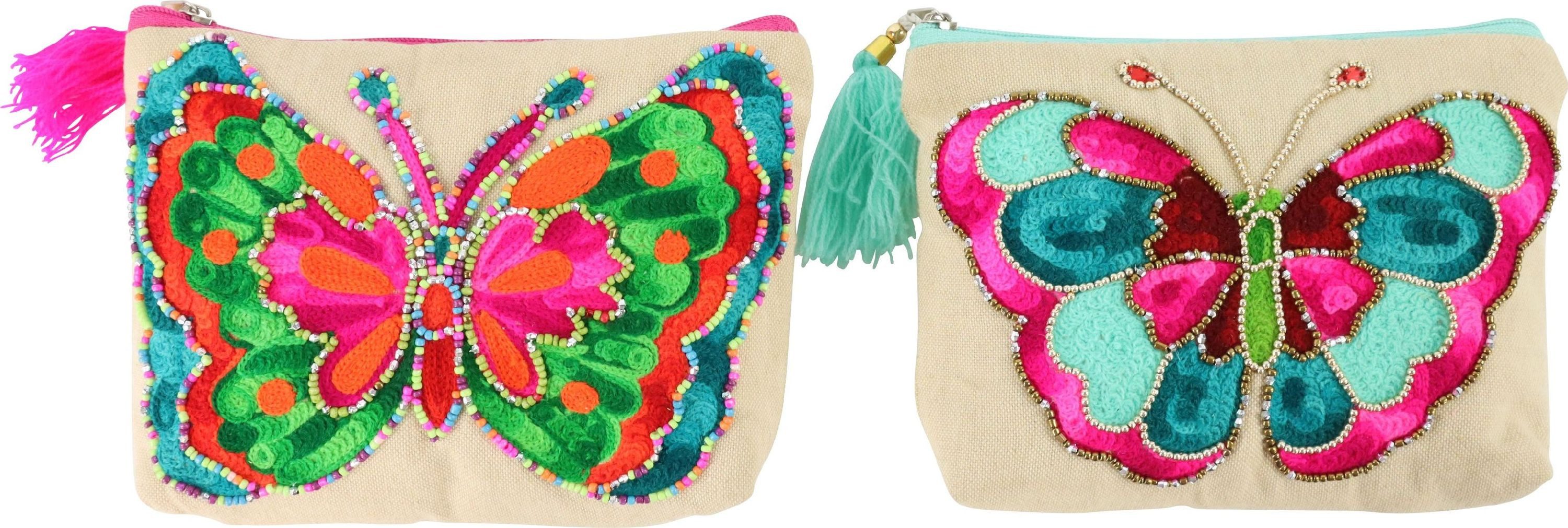 Dieses farbenfrohe 2er-Set von FURNARO begeistert mit kunstvollen Schmetterlingsmotiven, detailreich bestickt und mit Perlen verziert. Die Täschchen aus einem hochwertigen Baumwolle-Polyester-Mix sind nicht nur stilvoll, sondern auch praktisch --dank Reißverschluss und dekorativer Quaste. Ideal geeignet als Kosmetiktasche, Reiseetui oder zur Aufbewahrung von Schmuck oder anderen Kleinigkeiten. Das Design bringt frischen Wind in den Alltag und ist ein echtes Highlight für Liebhaber individueller Accessoires. Mit ihren leuchtenden Farben und dem charmanten Schmetterlingsdesign sind diese Täschchen nicht nur funktional, sondern auch ein stilvolles Geschenk für jede Gelegenheit.