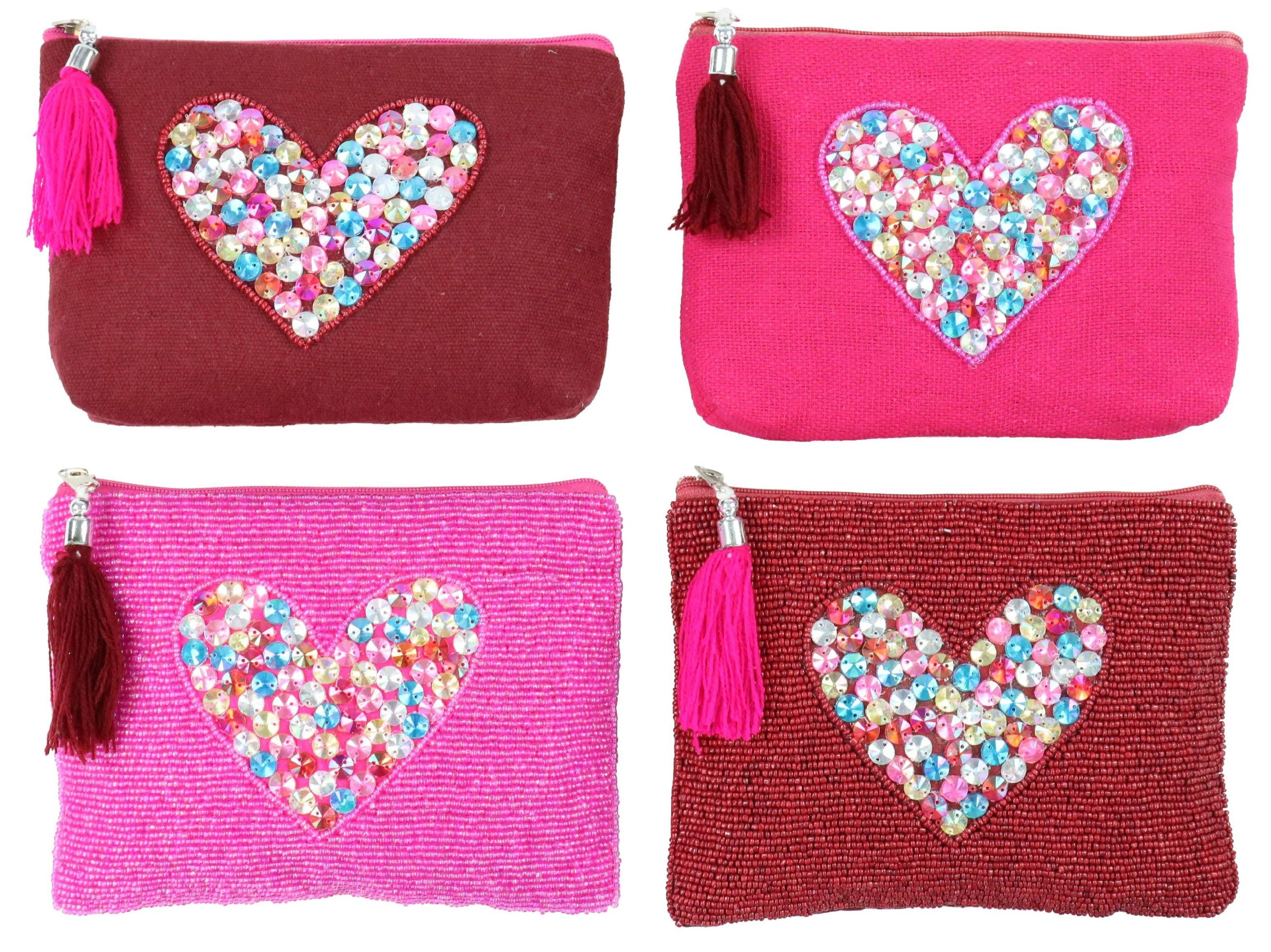 Besondere Merkmale | Schminktasche mit Perlen und Herzmotiv aus Baumwolle 10,5x13,5cm |