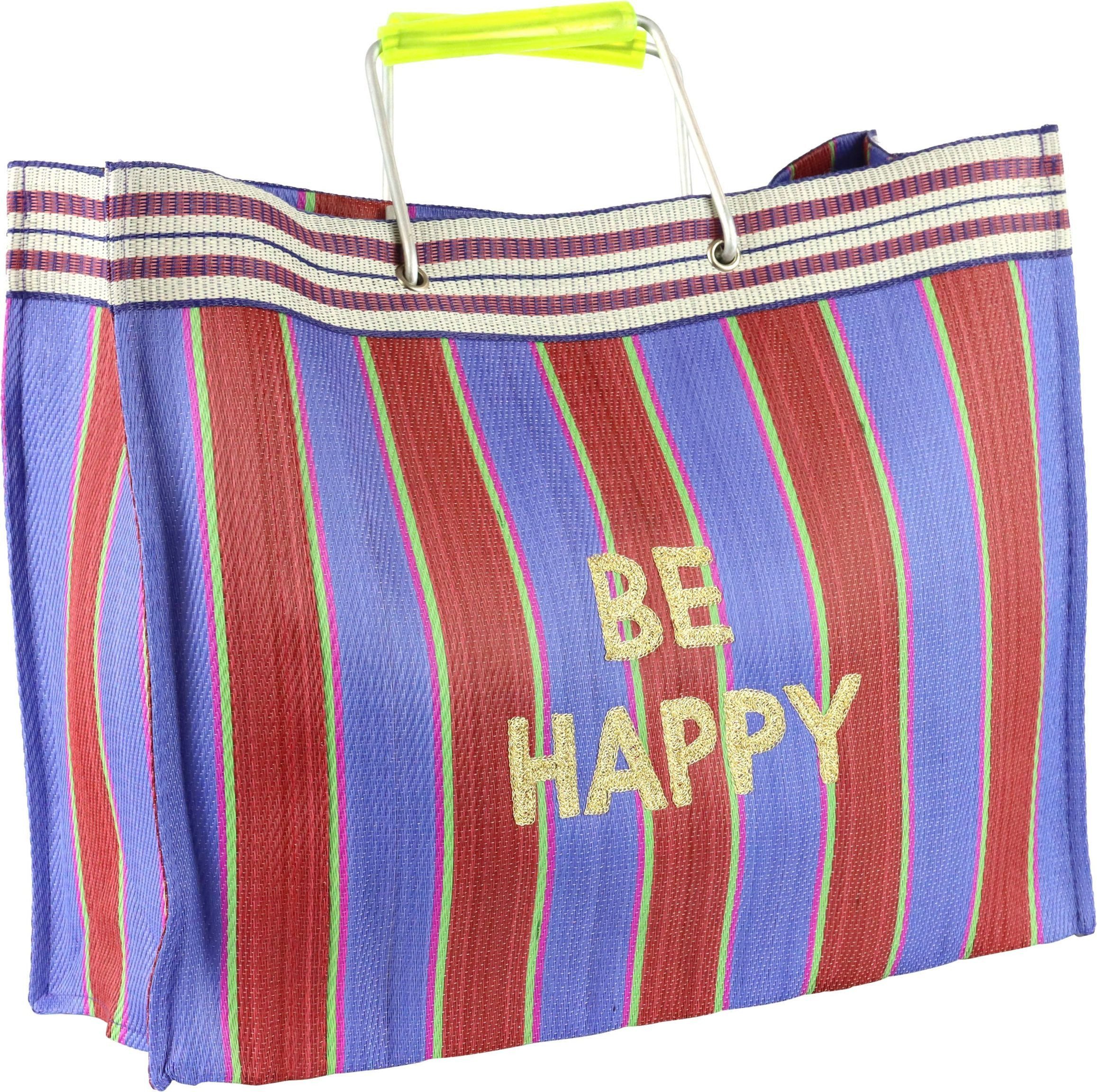Besondere Merkmale | Einkaufstasche mit Beschriftung Be Happy und Streifen 35x45x15 cm |