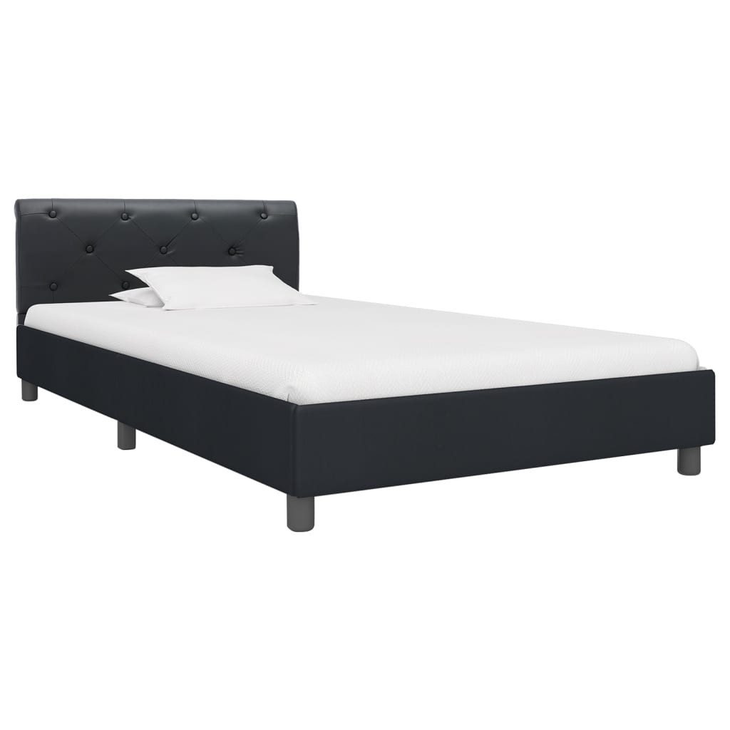 Dieser klassische Bettrahmen wird ganz bestimmt zum Mittelpunkt Ihres Schlafzimmers. Dieser Bettrahmen zeichnet sich durch ein schlichtes und dennoch elegantes Design aus und verleiht Ihrem Schlafzimmerdekor einen Hauch von elegantem Charme. Dieser Bettrahmen aus Holz und MDF ist äußerst robust und langlebig. Die pulverbeschichteten Stahlbeine verleihen dem Bett zusätzliche Haltbarkeit. Darüber hinaus wirkt das mit strapazierfähigem Kunstleder gepolsterte Bett einladend und lässt sich leicht reinigen. Dieses Bettgestell ist für Matratzen von 90×200 cm geeignet. Bitte beachten Sie, dass die Lieferung nur das Bettgestell beinhaltet. Eine Matratze ist nicht enthalten. Das Bettgestell ist leicht zu montieren.