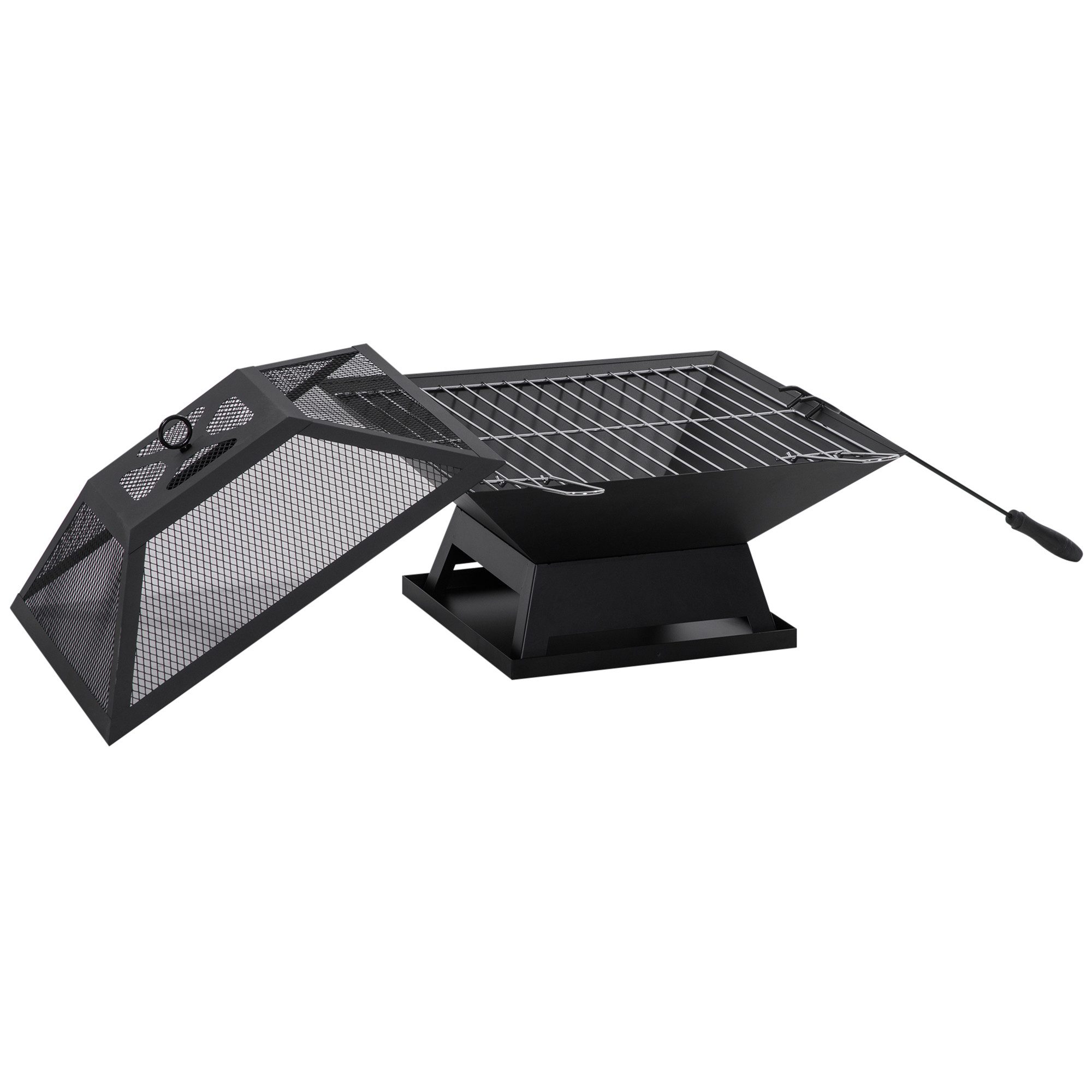 Bringen Sie mit unserer Feuerstelle Wärme und Stimmung auf Ihre Terrasse, um die sich Ihre Familie und Freunde sicher reißen werden! Sie kann nicht nur zum Heizen, sondern auch zum Grillen verwendet werden. Die Feuerstelle ist aus robustem, lackiertem Stahl gefertigt und hält auch hohen Temperaturen stand. Ein mitgelieferter Schürhaken schützt Sie vor Verbrennungen. Diese praktische und tragbare Feuerstelle ist ein absolutes Muss, wenn Sie sich regelmäßig am Feuer wärmen möchten.