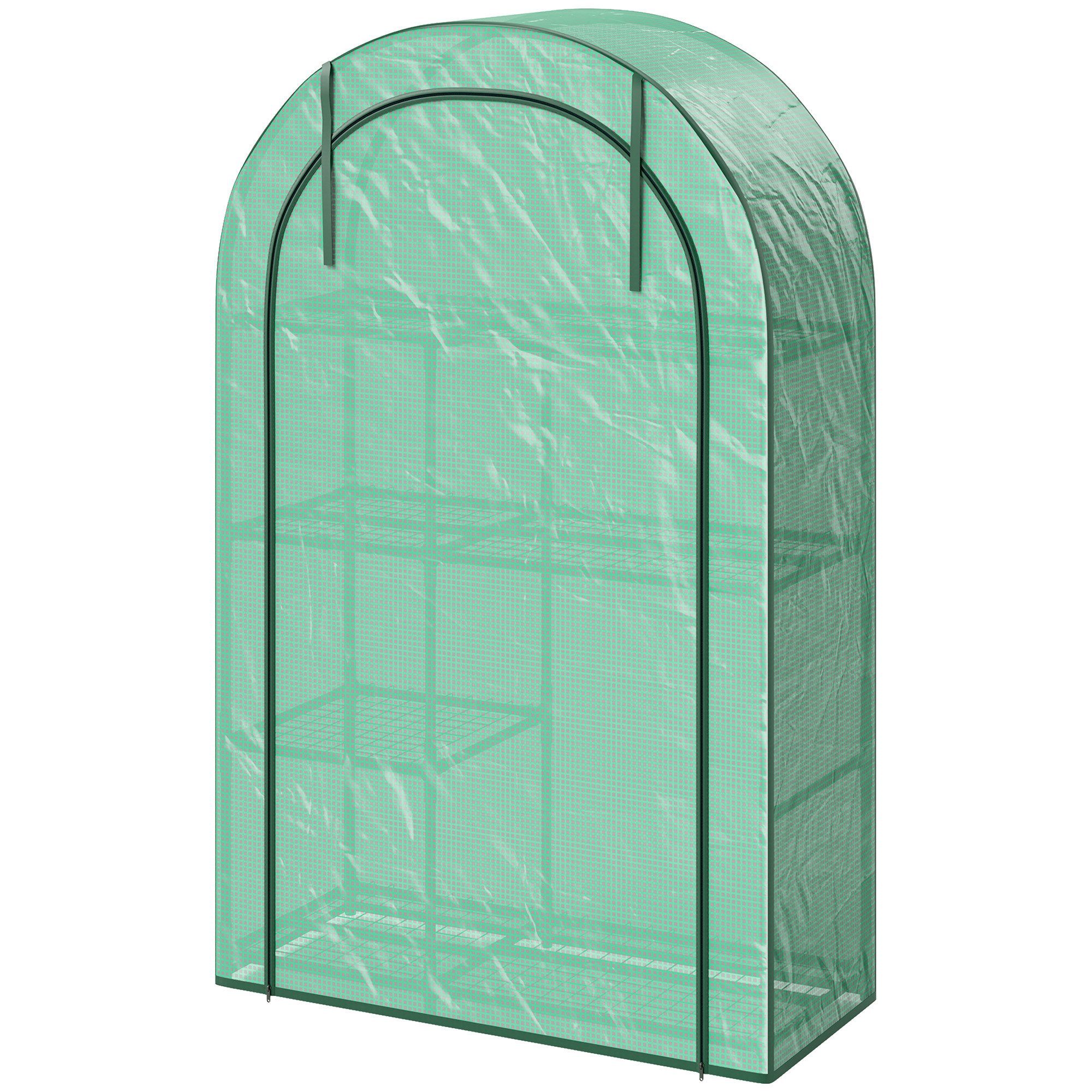Das Vier-Ebenen-Design dieses Gewächshauses bietet ausreichend Platz für Blumentöpfe und Anzuchtschalen, alles geschützt durch eine 140g/m² starke Kunststoff-Abdeckung, die vor UV-Strahlen schützt und reichlich Sonnenlicht bietet. Die hochrollbare Tür des Tomatenhauses mit Reißverschluss ermöglicht leichten Zugang und gewährleistet eine optimale Belüftung. Perfekt für Enthusiasten kleiner Gewächshäuser, die sich eine mobile Garten-Oase wünschen!