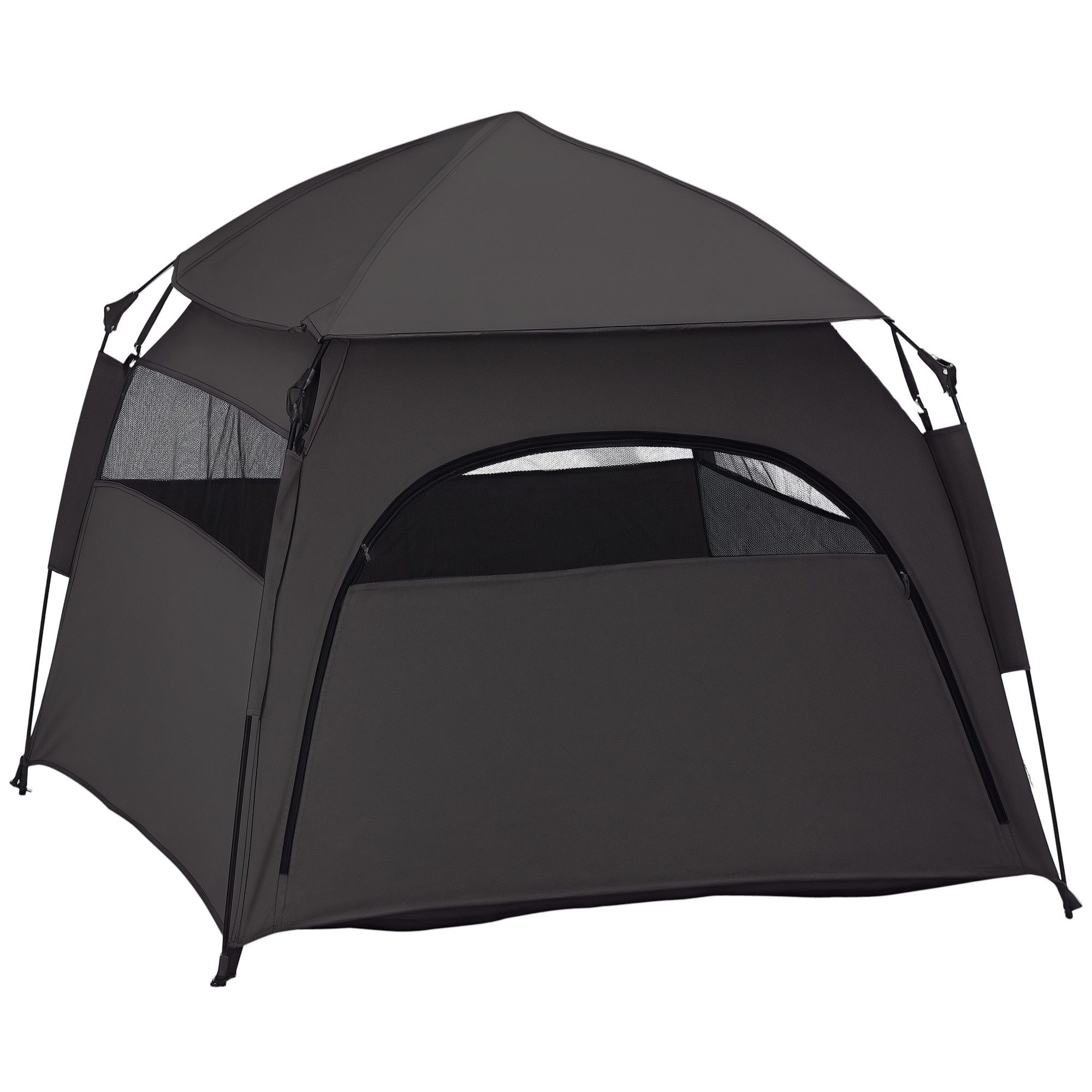 Wenn Sie einen bevorstehenden Campingausflug mit Ihren vierbeinigen Freunden planen oder ängstlichen Haustieren helfen möchten, sich zu Hause zu entspannen, sind die Hundezelte für große Hunde die Lösung. Dieses Outdoor-Hundezelt bietet Schatten, wo immer Sie auch hingehen, und ermöglicht es Ihrem Haustier, die schöne Natur durch Netzfenster zu genießen. Das Zelt gibt Ihrem Hund das Gefühl, in einer Höhle zu sein, sodass er sich entspannen kann. Es lässt sich leicht auf- und abbauen, und die Tragbarkeit ist ein Teil dessen, was es zu einem so hervorragenden Haustierzubehör macht.