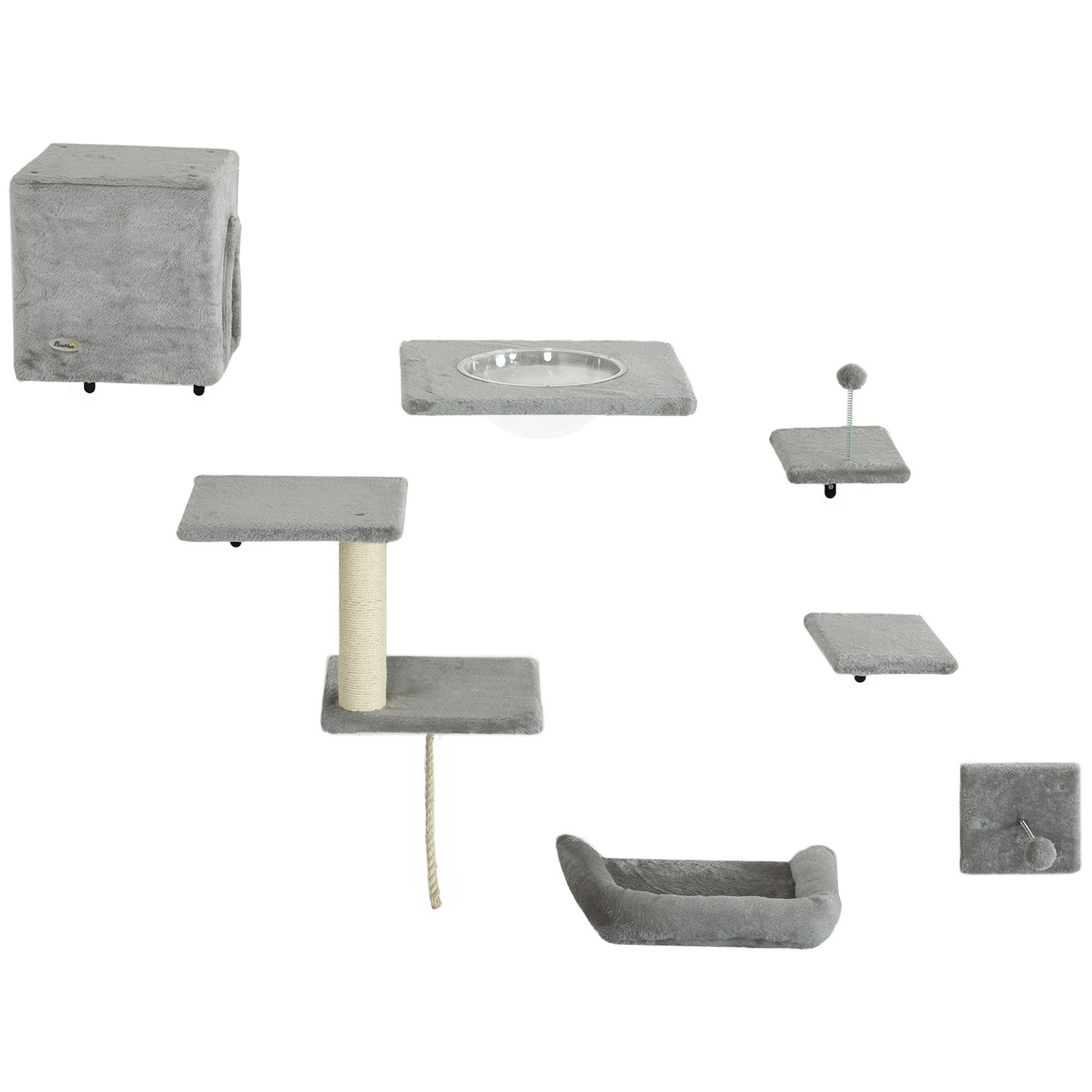 Gestalten Sie die Spielstunden Ihres pelzigen Freundes neu mit dem Katzen-Kletterwand-Set! Dieses Wand-Katzentreppe Set für Katzenwandkletterer umfasst sieben Teile, darunter vielschichtige Plattformen, ein kuscheliges Katzenwandbett und einen spannenden Kratzbaum. Aus dicken Brettern und robusten Metallhalterungen gefertigt, bietet dieser Wand-Kratzbaum eine sichere Kletterwand für Katzen, die nicht nur Platz spart, sondern auch unendlichen Spaß und Gemütlichkeit garantiert.