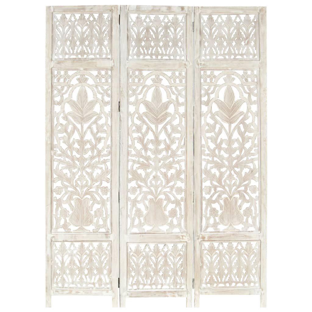 Verleihen Sie Ihrem Zuhause mit diesem schönen, handgeschnitzten Raumteiler einen Hauch von Eleganz! Es ist perfekt, um es im Schlafzimmer aufzustellen, um einen separaten, privaten Ankleidebereich oder einen Teil eines Raums zu schaffen. Darüber hinaus verfügt der Raumteiler über eine solide Konstruktion und ist von Hand mit wunderschönen Mustern geschnitzt, was den modernen Charme des Sichtschutzes unterstreicht. Es kann außerdem leicht zusammengeklappt verstaut werden, um Platz zu sparen, wenn es nicht verwendet wird. Der Klappschirm ist einfach zu montieren. Hinweis: Da der Artikel handgefertigt ist, können kleine Unterschiede in Muster und Farbe auftreten.