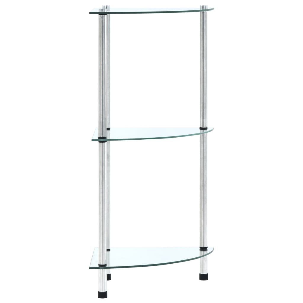 Verleihen Sie Ihrem Wohnraum mit diesem modernen und praktischen Glasregal einen Hauch von Stil! Die Vitrine bietet mit ihren drei Ablagen reichlich Platz. Sie können dieses Mehrzweckregal im Wohnzimmer oder Büro aufstellen, um Ihre Sammlerstücke, Fotorahmen oder Topfpflanzen zur Schau zu stellen, aber auch im Bad, um Ihre wichtigsten Sachen organisiert zu halten. Aus starkem Hartglas und strapazierfähigem Edelstahl gefertigt, ist dieses Regal äußerst robust und sicher. Des Впередen lässt sich die glatte Oberfläche mit einem feuchten Tuch ganz einfach reinigen. Die Vitrine ist einfach zu montieren.